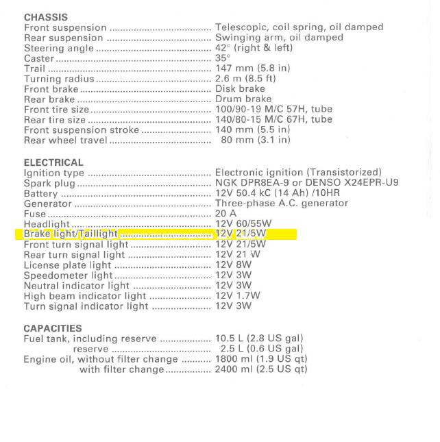 Yes the honda bulb I am talking about IS a 21/5W 12V, I've got two of them in my GS. They are made especially for Honda, if no one told you you'd never guess it's a standard 1157 21/5W 12V bulb with a much brighter brake light which is what we all want. The running light though is the same as a standard bulb so there is a greater difference between the two.