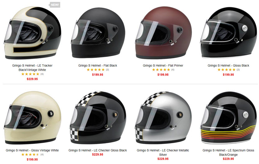 WD, I'll completely agree with you there. Biltwell helmets look great, but as you said, trying to find something that fits might be tough. The yellow and orange striped full face is probably the best looking retro helmet I've seen since I've been looking for the past two months.