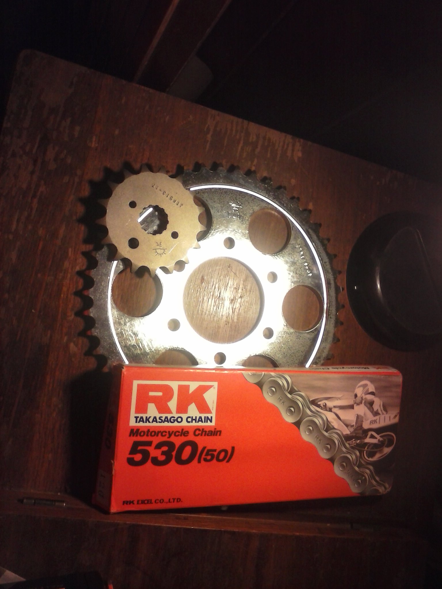 Here's my chain conversion "kit,"  and I've got 2 more sprockets on the way. Smiley Paid less than 70 bucks for the stuff in the picture. About $25 for the rear, $14 for the front, and $30 for the chain. Got a 9 dollar sprocket coming and another 10 dollar one on the way as well.