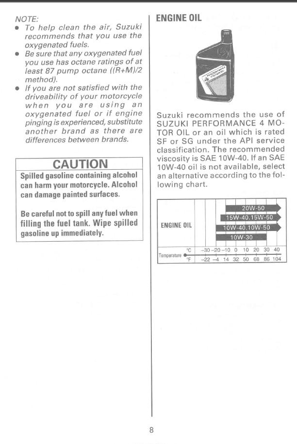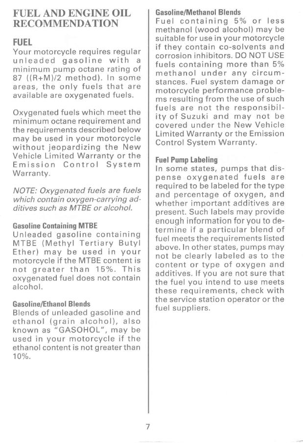 Gasoline/Ethanol Blends: Gas and ethanol (grain alcohol) may be used if the ethanol content is under 10%