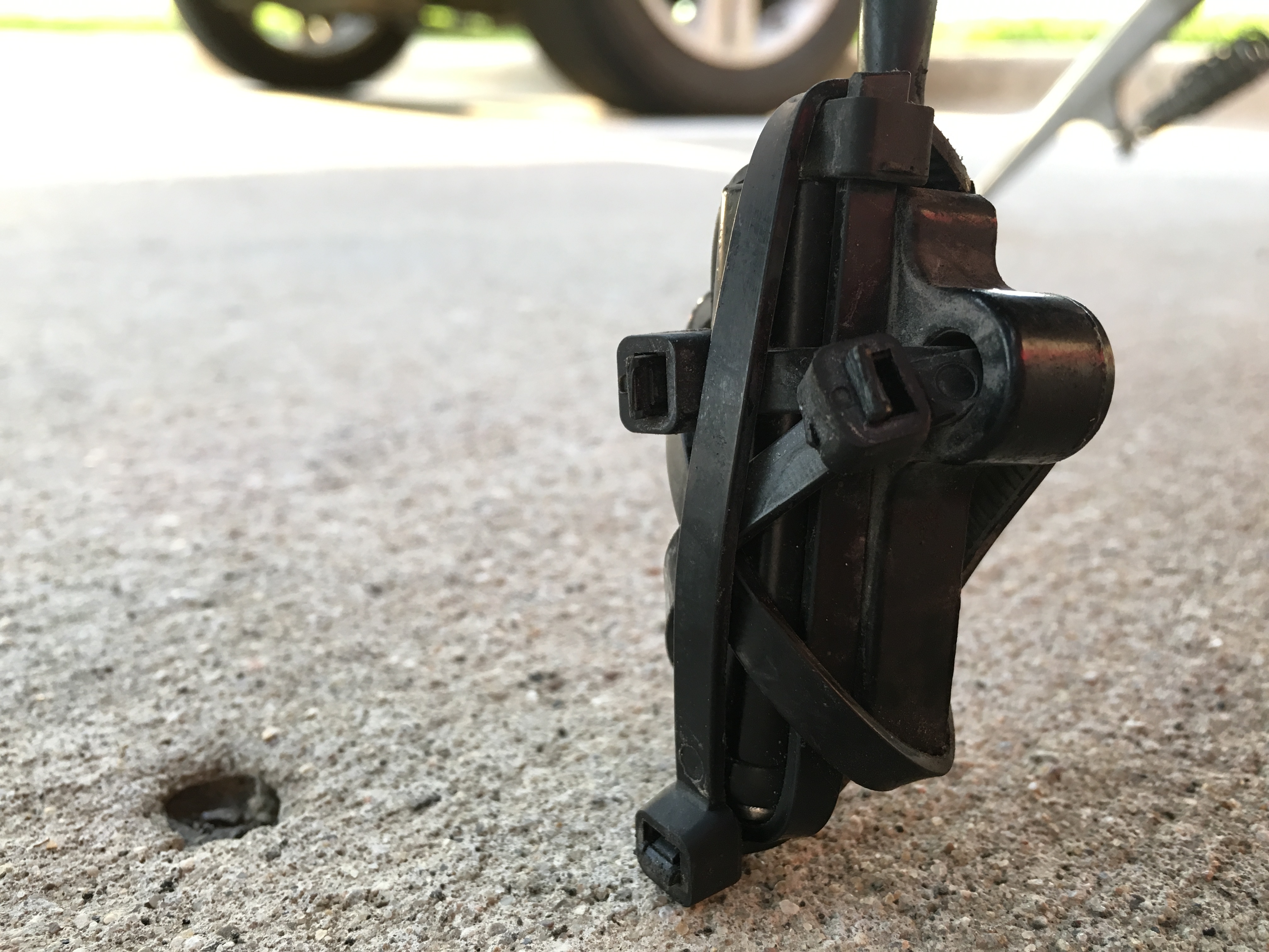 Hey so found this pear like anomaly under my bike... Wrapped up in black tape and zip ties.. (Bought bike a month ago still finding out new secrets) anywho unwrapped the whole thing and looks like the kill switch for the kick stand was moved to the H bracket that holds the stock muffler in place. Removed the H bracket cuz it's looked like an unshaved lady! And now the push to detonate kill switch button is dangling under neath her like she's had a sex change..