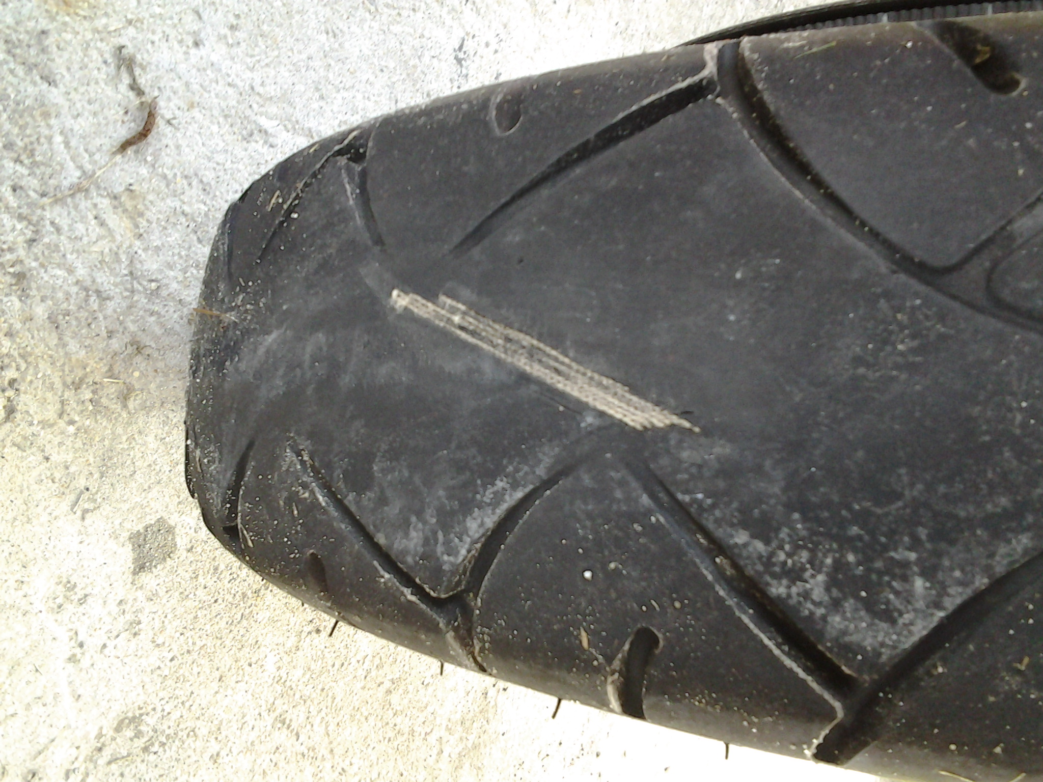 Whats wrong with that tire , looks new on the sides , still has the nubs , one hell of a chicken strip ! Think it's time to take off the training wheels ?