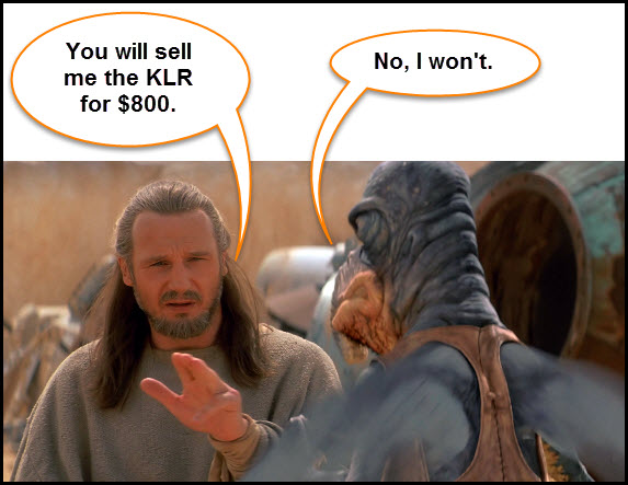 To get a legit rideable KLR 650 for $800... Now that WOULD be a deal...  Shocked