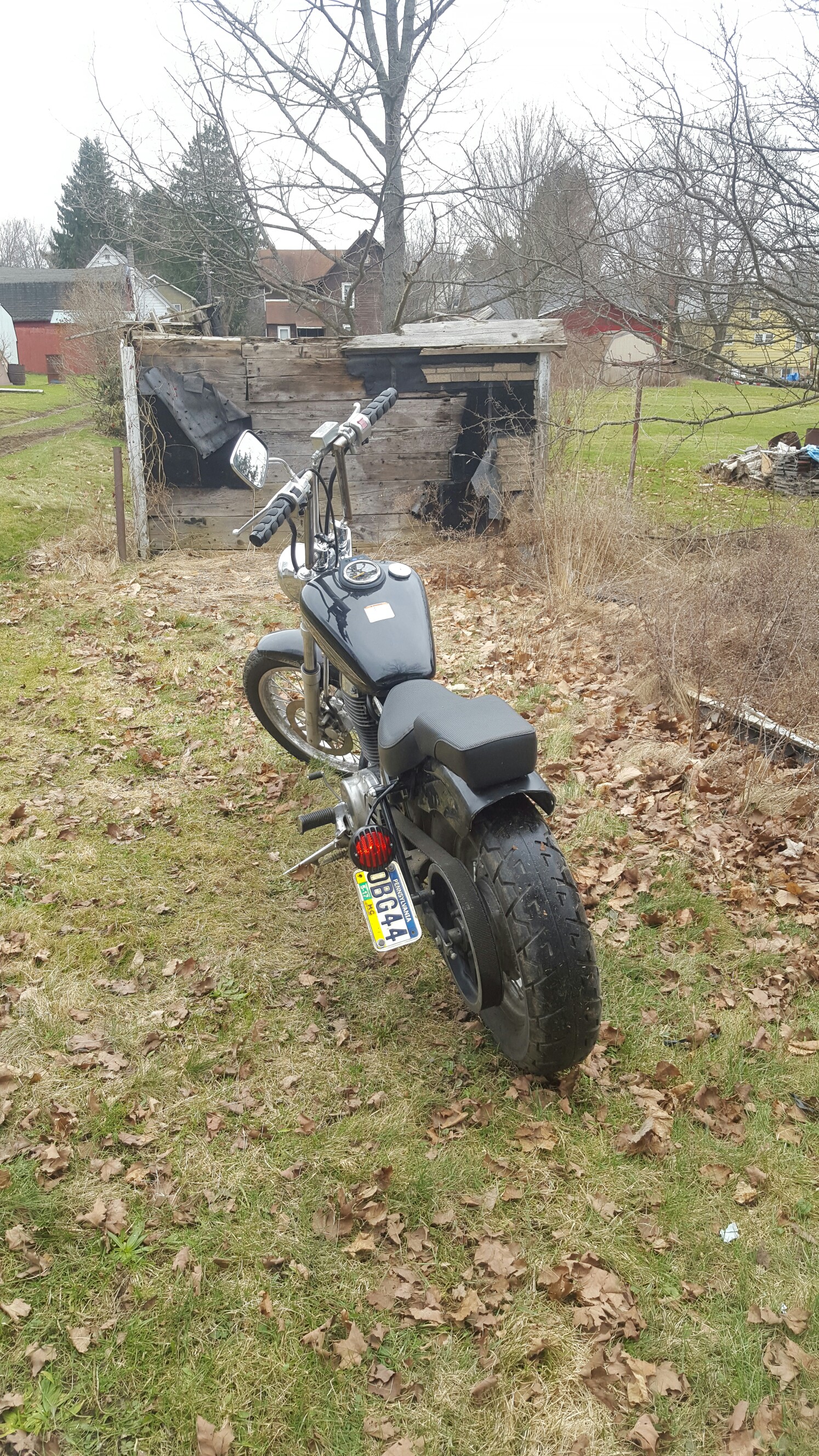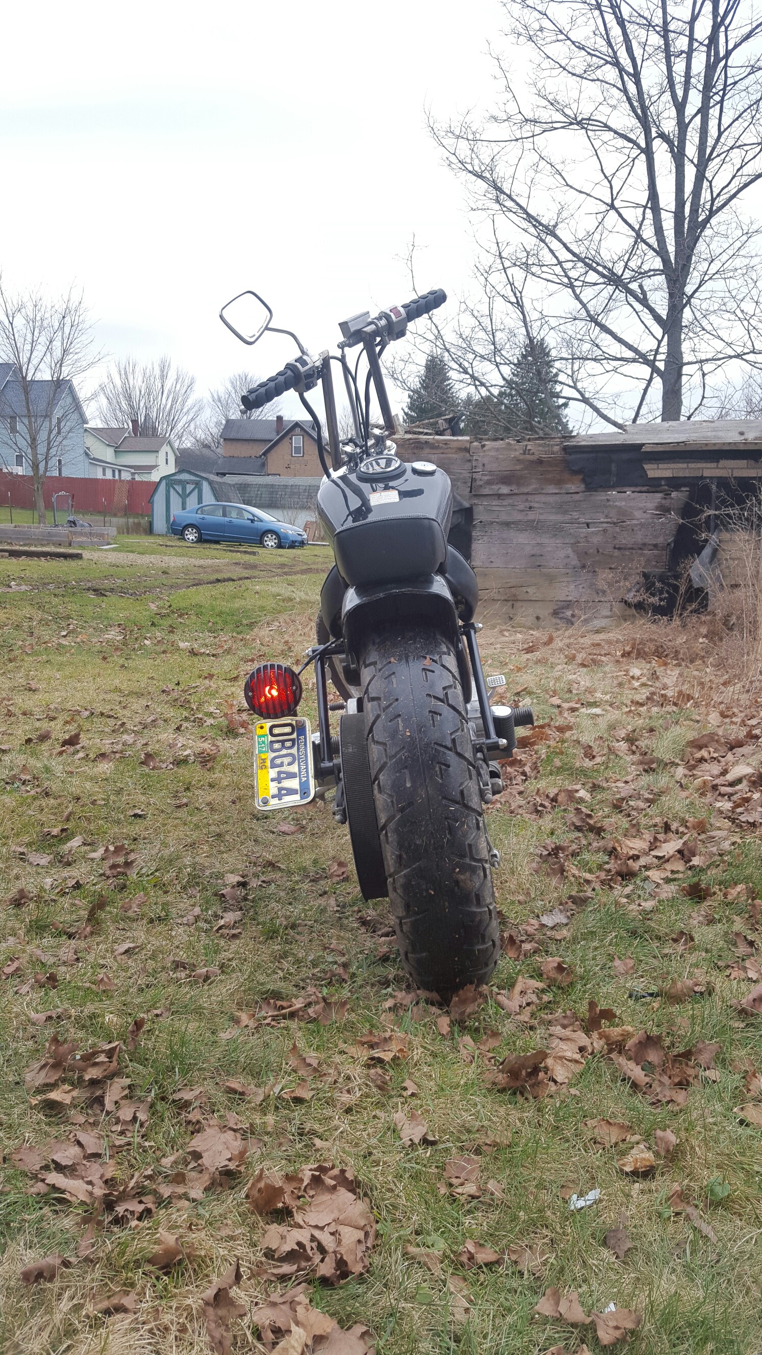 Figured I'd add some new pics chopped rear fender added struts and side plate.
