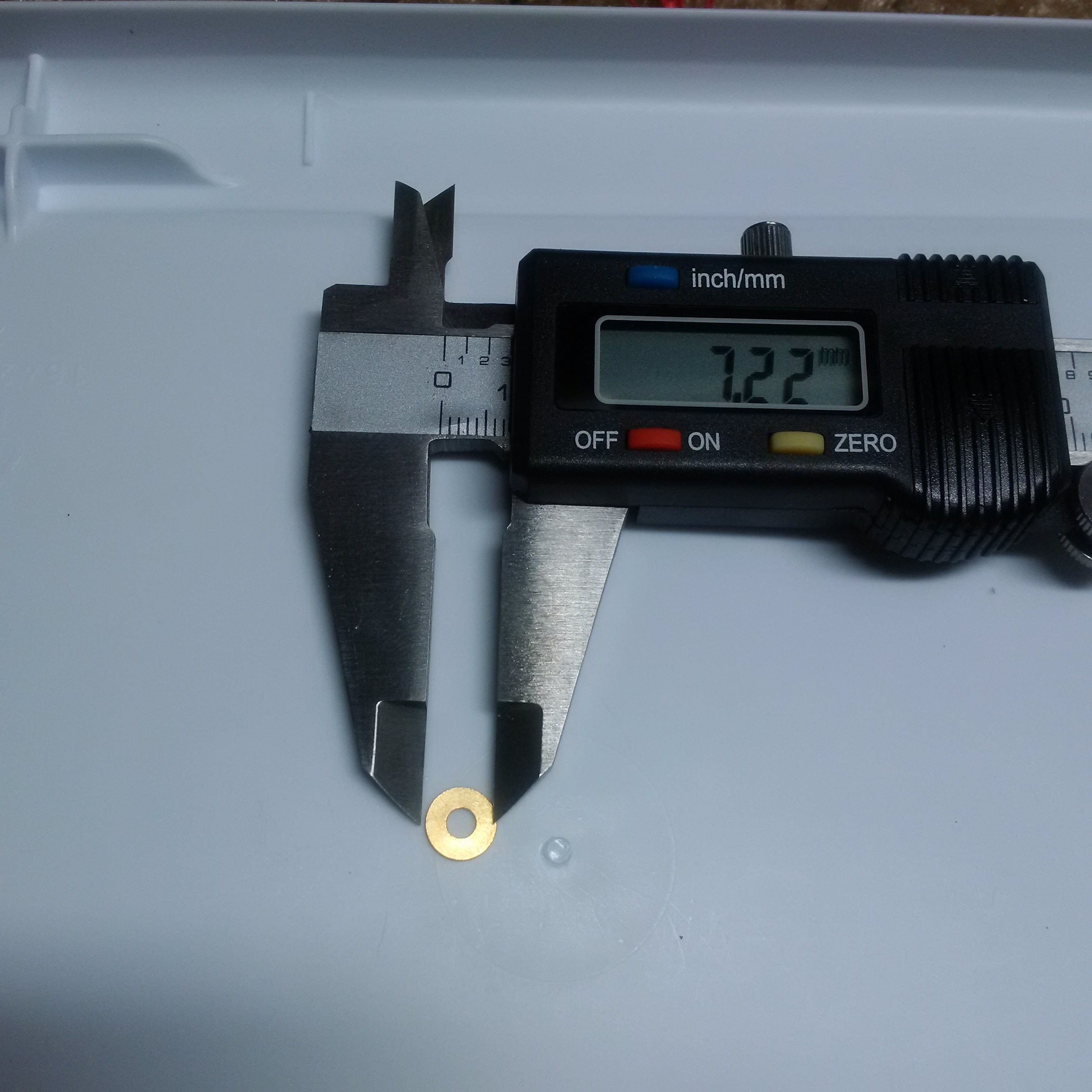 I found brass #4 washers. If this is the correct #4, mm measurements are below. Note that the measurements are exact, I just had to lay it down in the first image and it just looks like an inaccurate position.