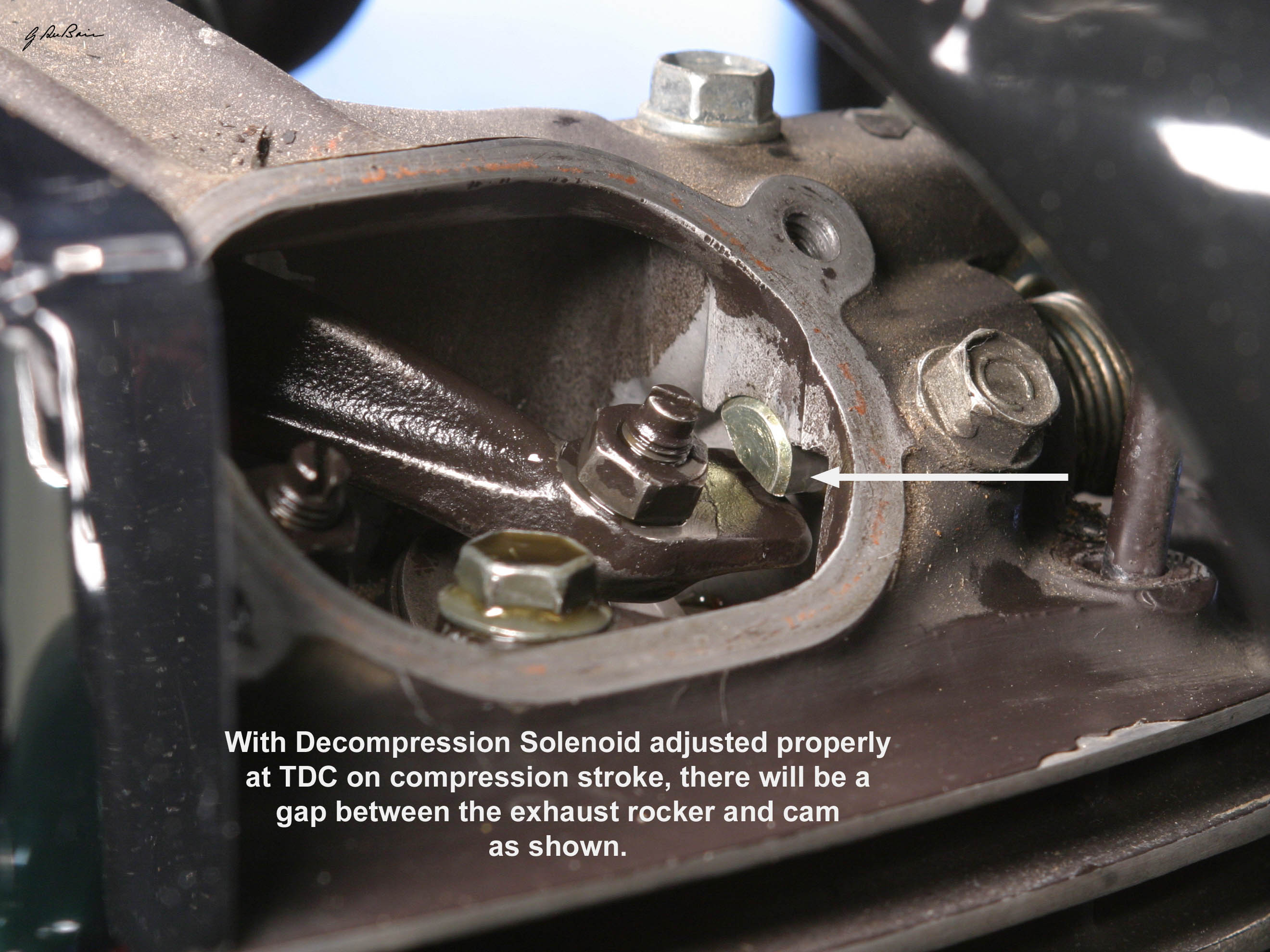 What I want to know is how far does the lever have to move to be effective? How far does the decompression solenoid move the stock lever? Or to put it another way, how many degrees does the lever need to rotate, after all the slop is removed, to be effective? I’m assuming it doesn’t have to move very far to be effective. We just want to ease the effort of starting the motor.