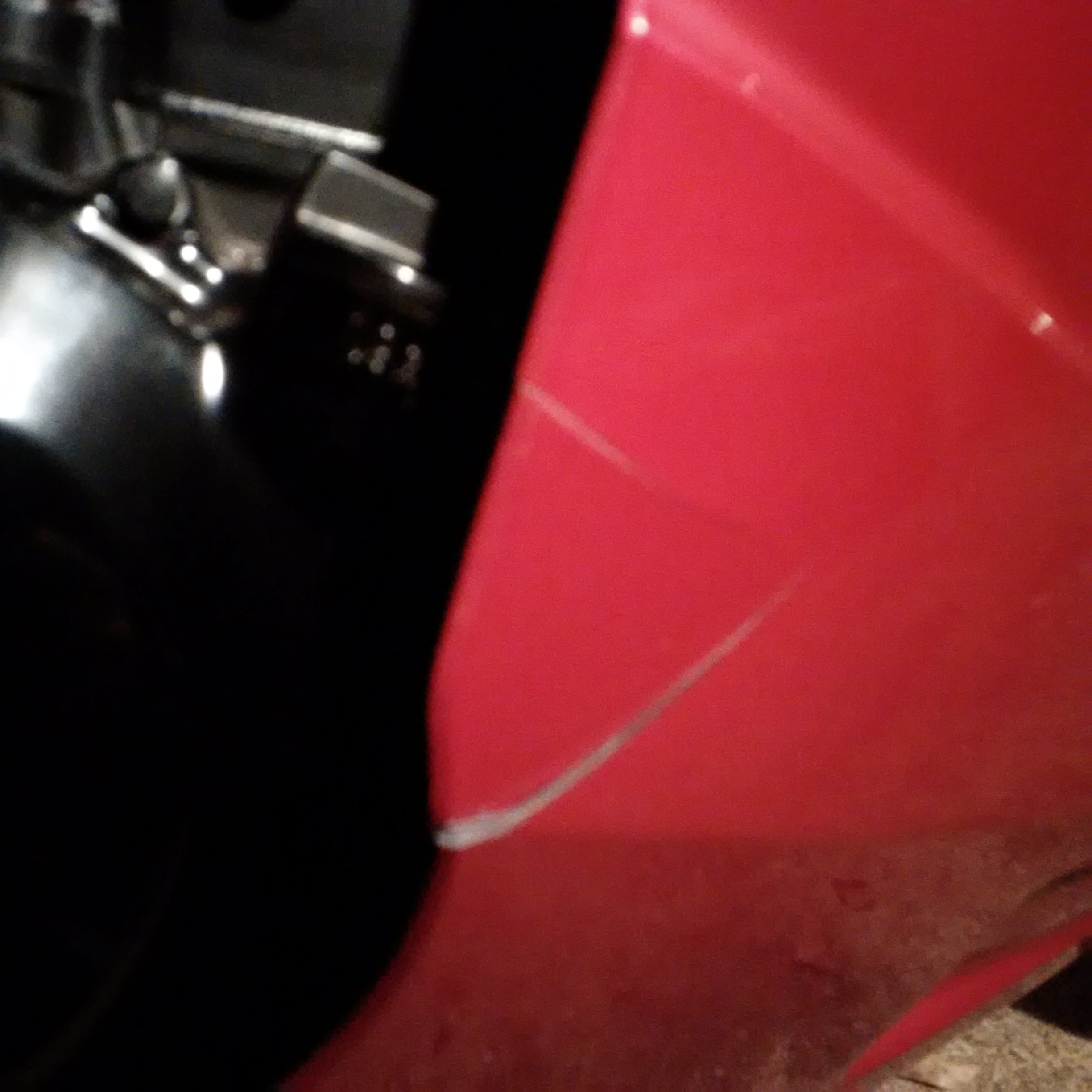 Cruising a two lane country road about sundown, 55mph, two cars in oncoming lane approaching. Out of nowhere a deer, which I never saw in advance, apparently lunged out from the ditch and into my right side. All I remember was "wham" and thinking I was about to slide into oncoming traffic...still not knowing what happened. I just held the wheel straight, let off the gas, no brakes, eventually pulled in the clutch, and coasted down to about 15mph. I was almost in the dark and knew I was a few miles from the county dump site. I crippled the Ninja in and under the light checked things out and regained my composure. Looked ok to make it the remaining 5 miles home. Assessment so far is a busted front fender (ebay replacement ordered), crack in main faring that I can fix, snapped and busted right rearset where I think his head slammed into my foot and pushed it all in and back, and fur all over.