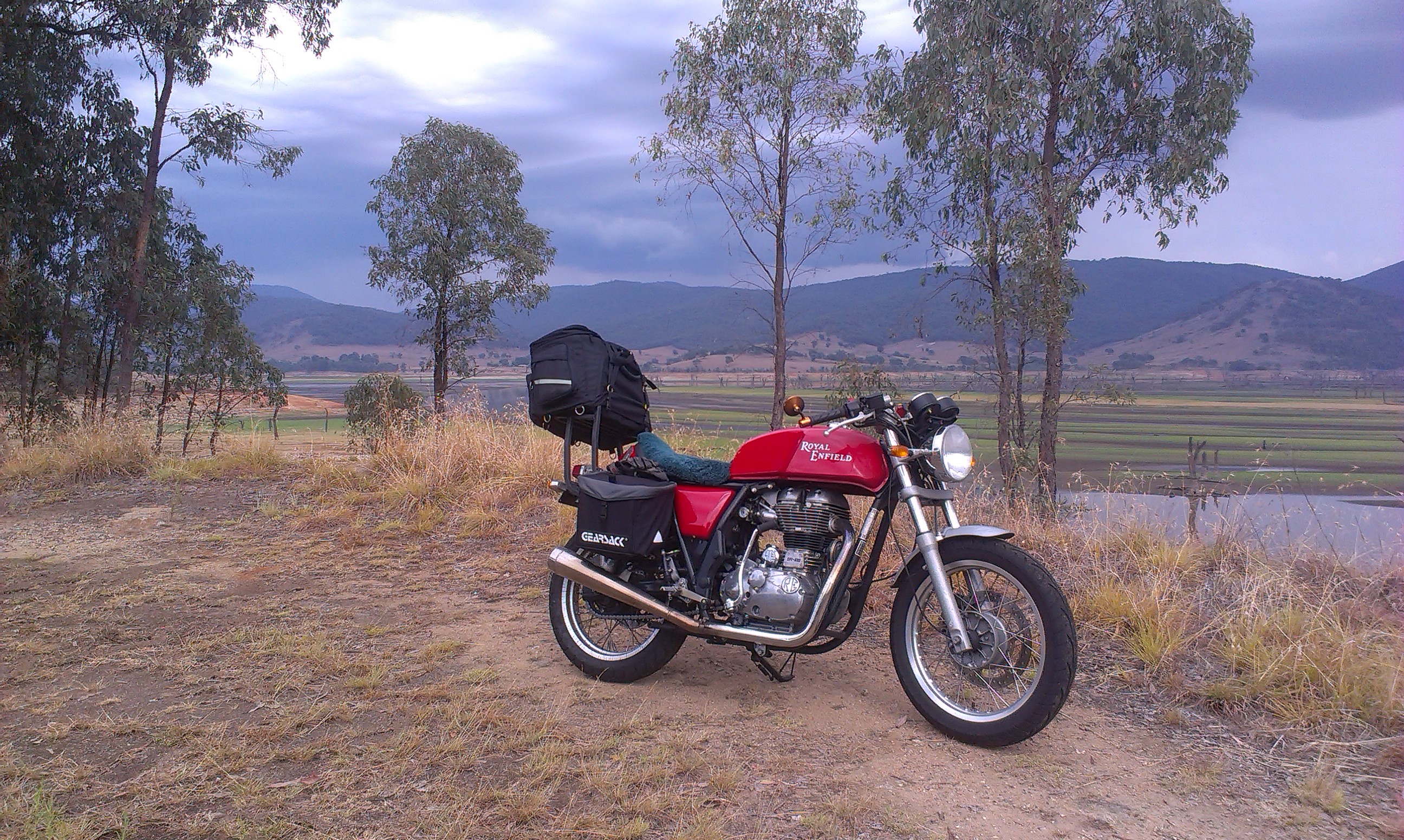 You could maybe knock up a rack like this one on my Enfield: can fit tons of stuff in that bag and there's still room to hang a tent or swag plus the gas bottle and stuff. My other bike, the bag can sit on the back seat and the rack is free for all that other crap.
