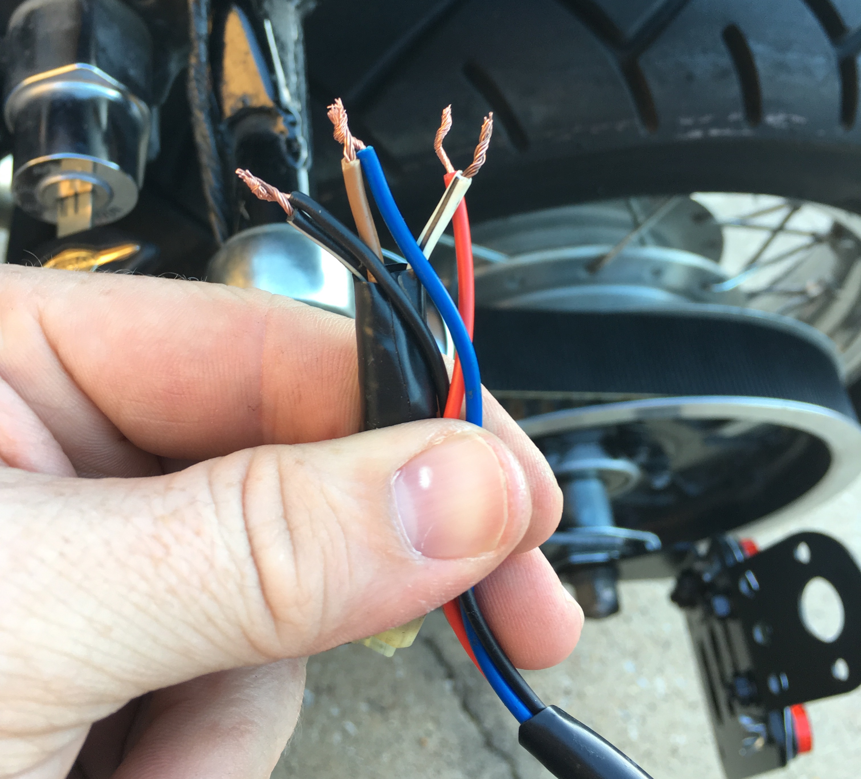 After ordering a sick bobber style tail light assembly with license plate holder I ran into some problems with the color coating of the wires on bike vs on the new "universal brake light" here is what I researched and what I found out. Pictures explain