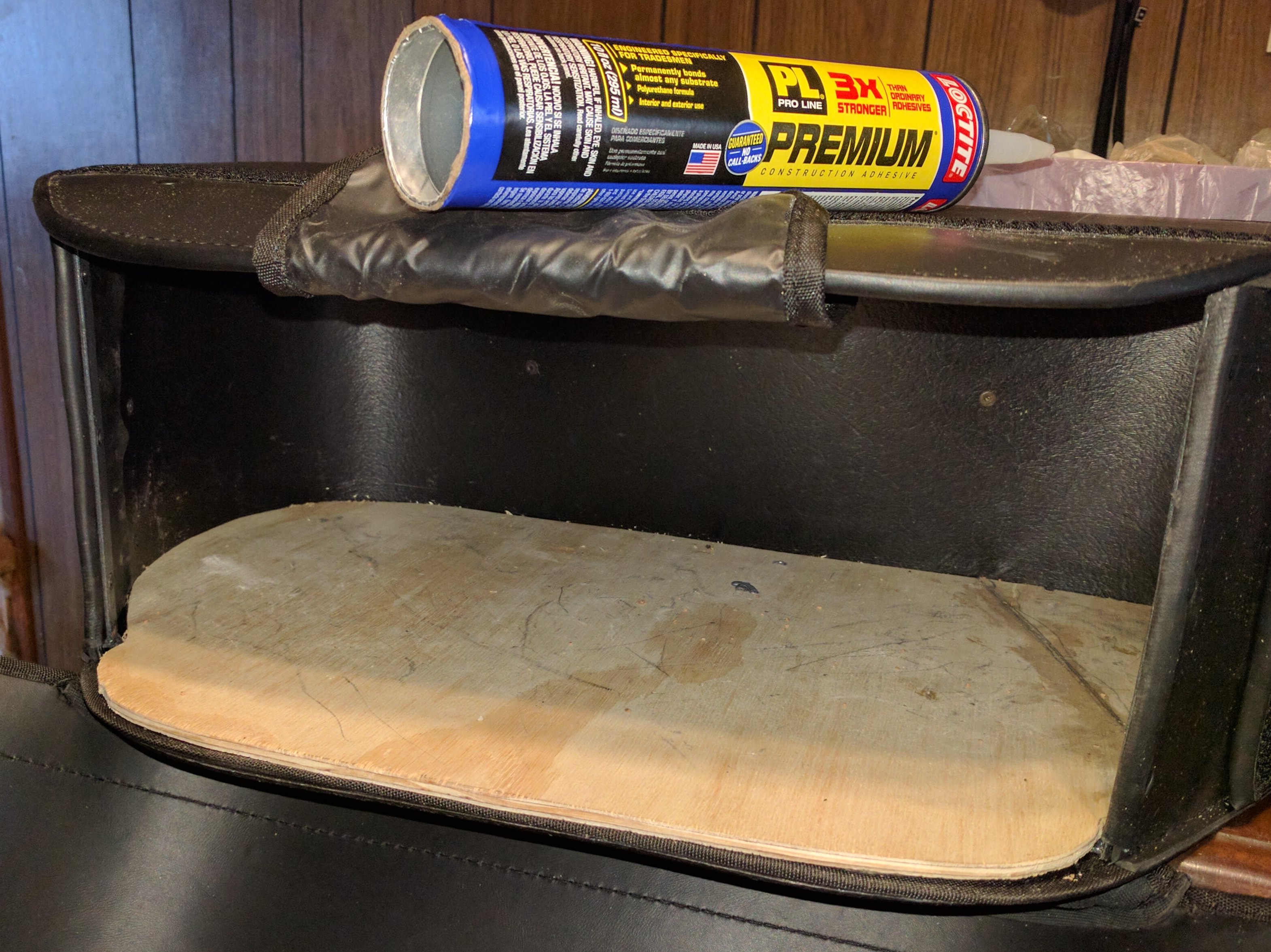 OK, so this is how you add a 1/8" thickener plywood backing to the bag, so you can hard mount it to the frame.