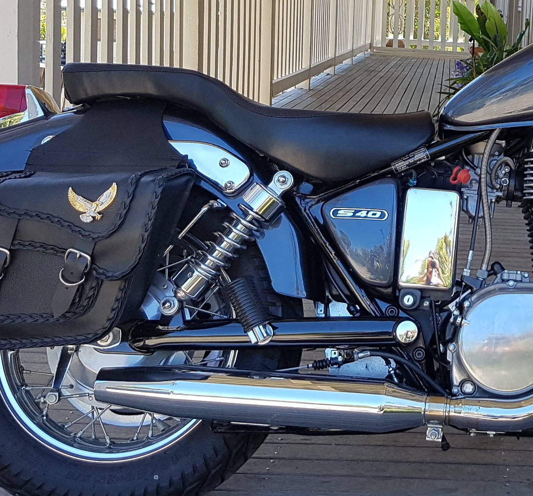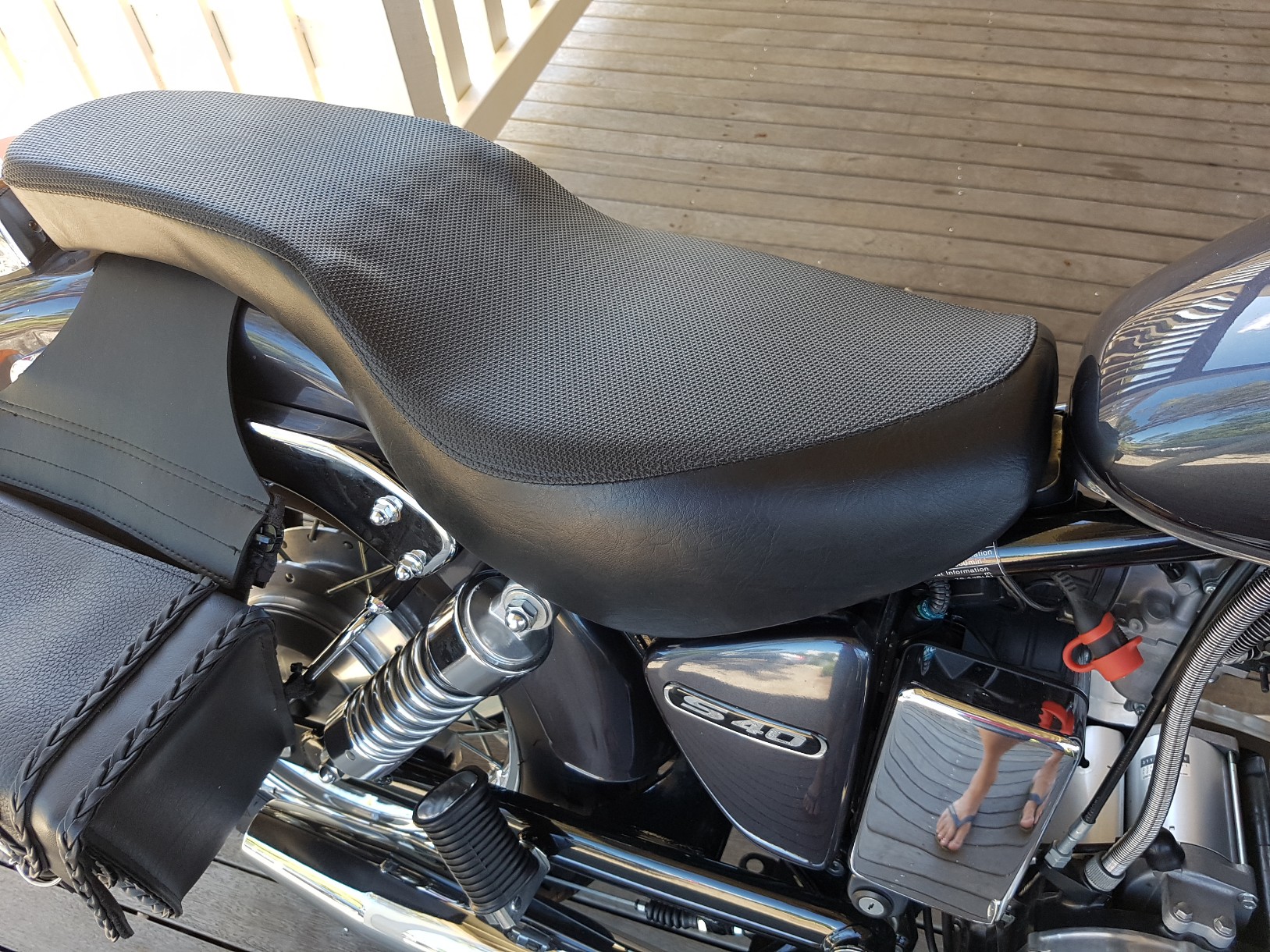 This is it reinstalled. I think it looks good, at this stage, and it is a big improvement on the stock seat. My tailbone doesn't get sore when I ride and I can move back a little so I can lean forward into the wind when I get up to around 100 kph. Even with my tailbone back against the hard ridge it is still more comfortable than it was originally  Smiley
