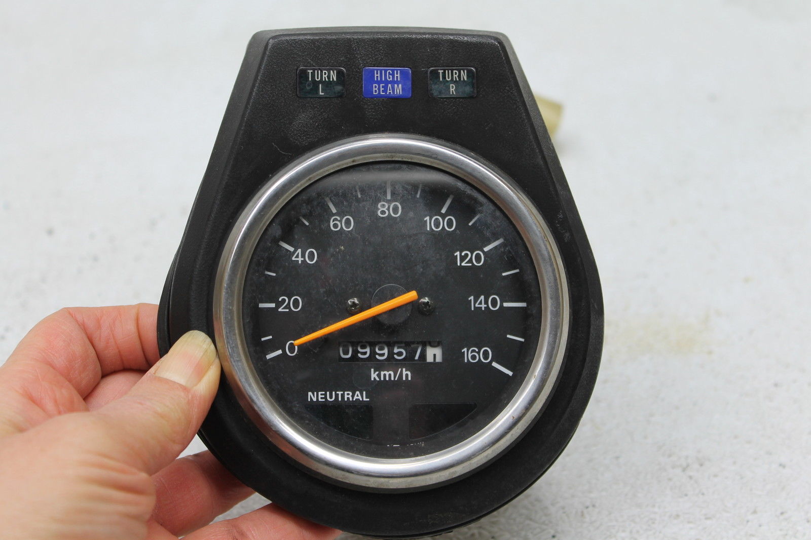 High beam indicator bulb is between the turn indicators above the speed-o-meter. The indicator I am questioning is on the bottom of the speedometer.