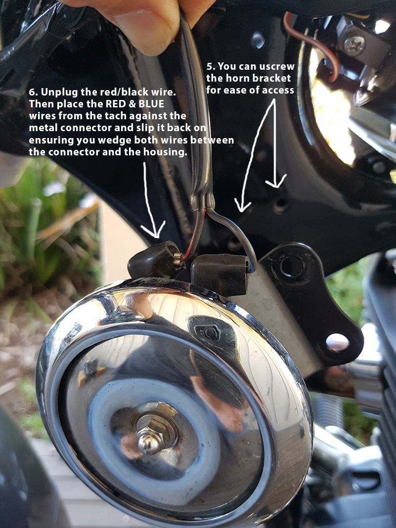 I am just curious, but why would a tach hookup require connecting any wires to the horn?