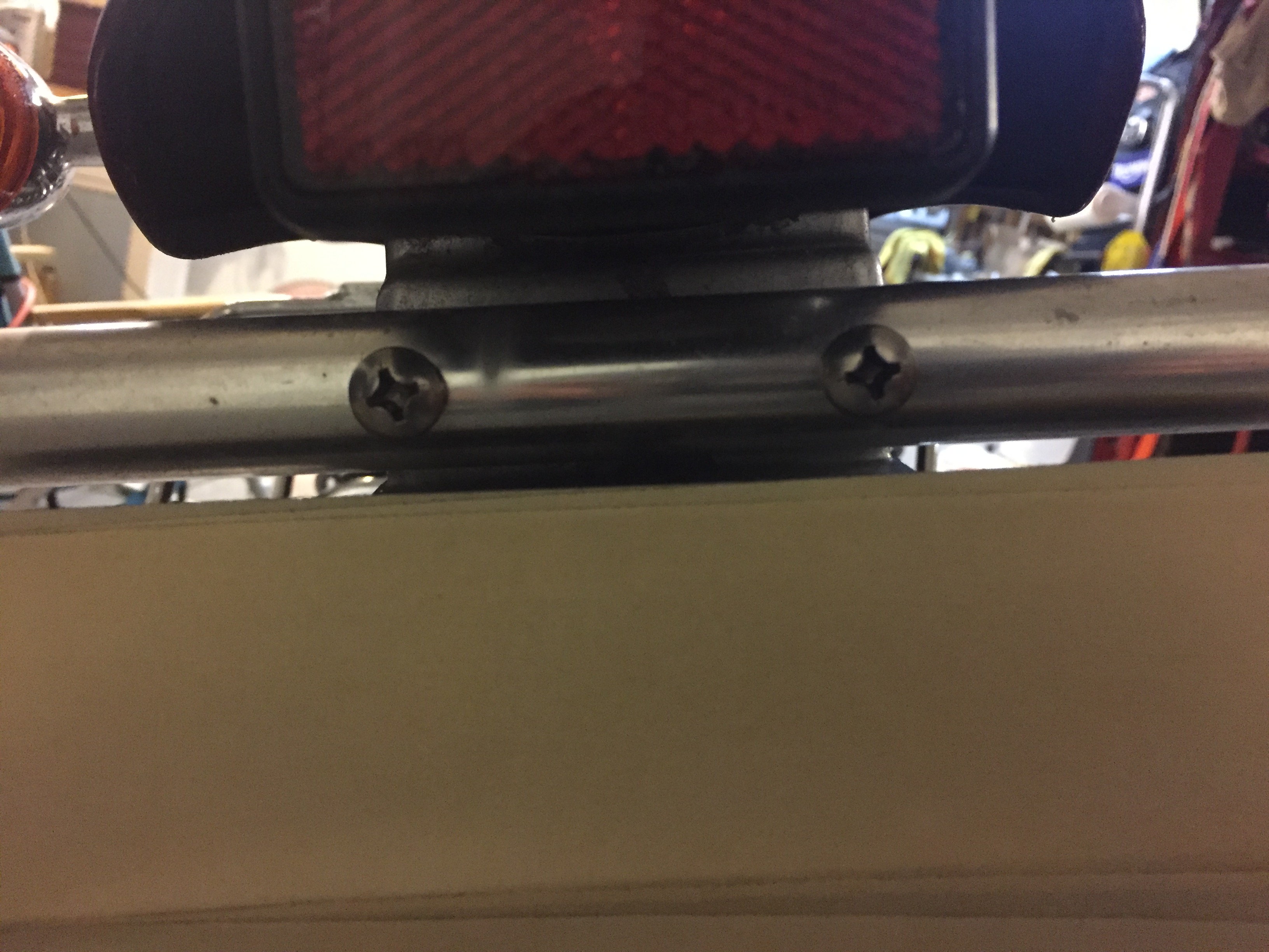 I drilled some holes in the flatbar and cut the saddle bags to the length I thought looked good and used threaded rivets to hold them on.
