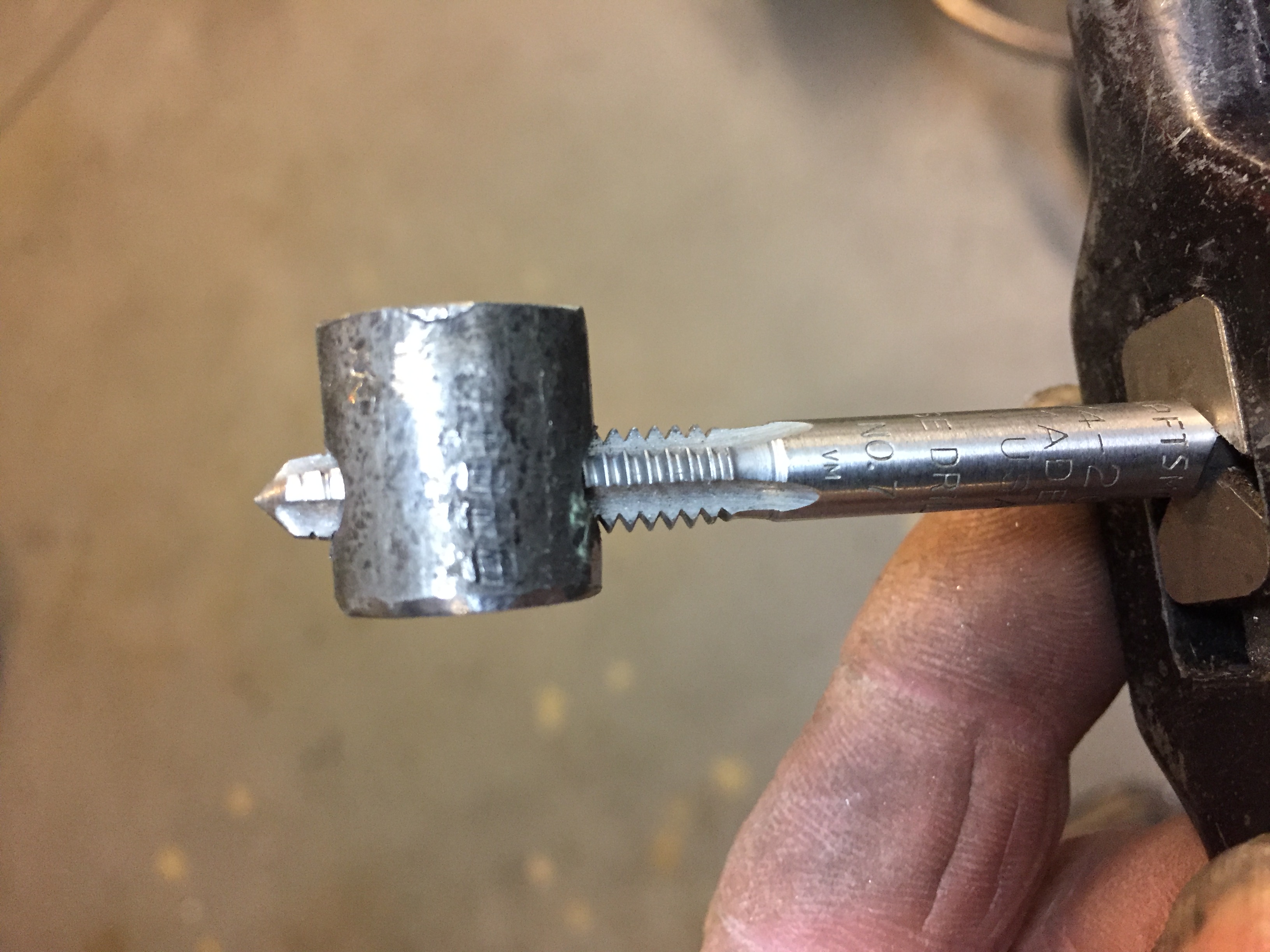 Then I drilled the center out and tapped it to fit some screws I had in the garage.