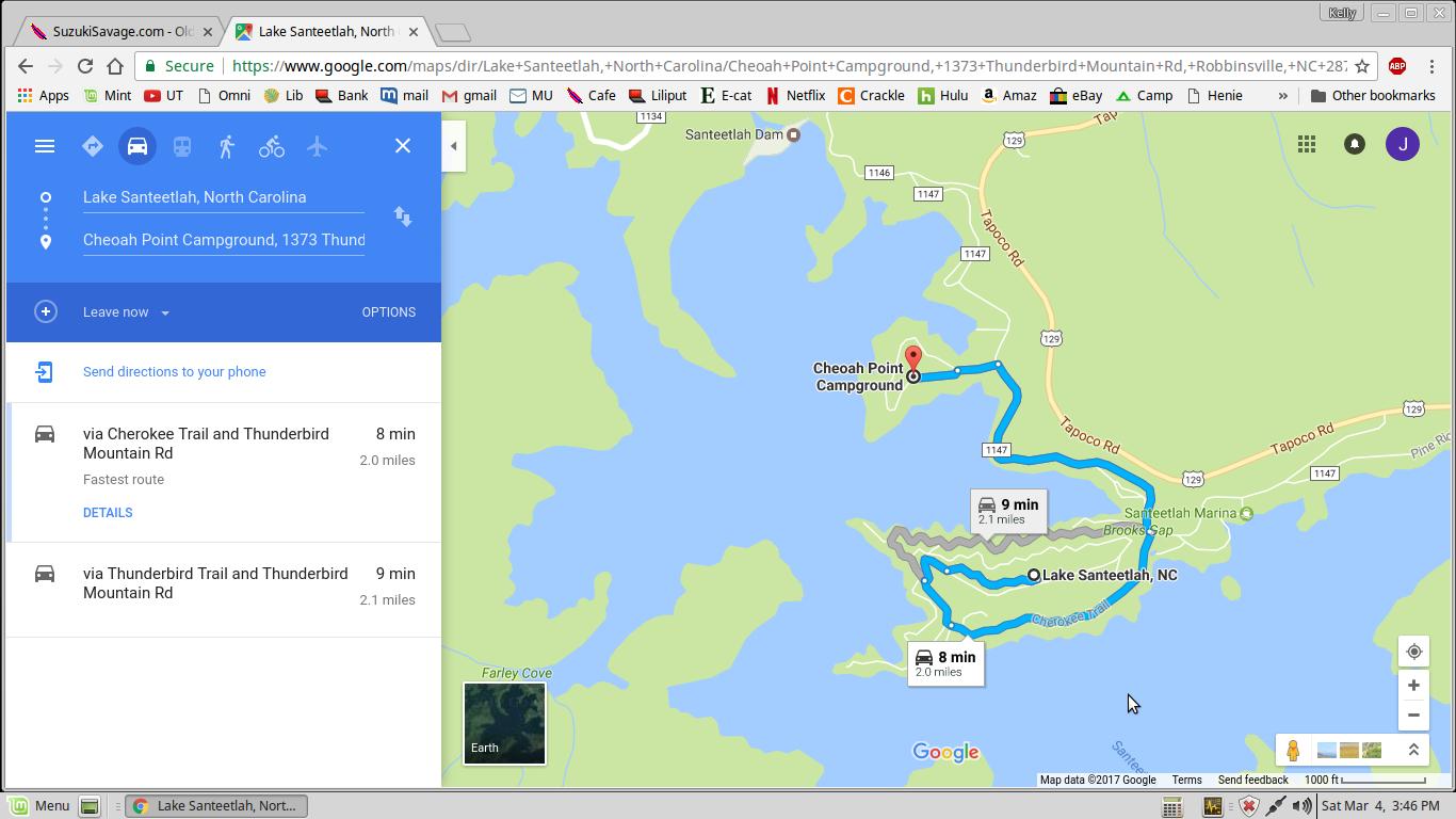 Got folks looking for detailed directions to get to the campground cabin site. Turns out the nearest town really is Santeetlah Lake, NC which is across the bay (south side) from the cabin.