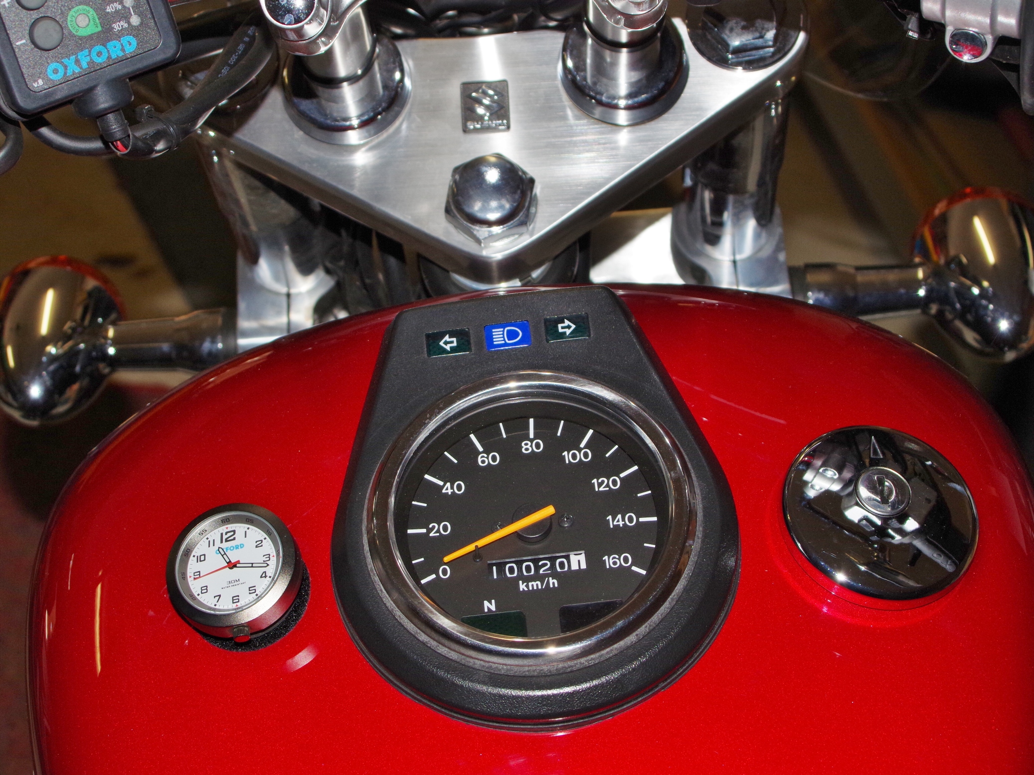 In reply to jibber jabber: (1) on the left side h/bars is the switchblock for the Oxford heated grips, (2) on LHS of tank is a stick on clock also made by Oxford. See attached photo