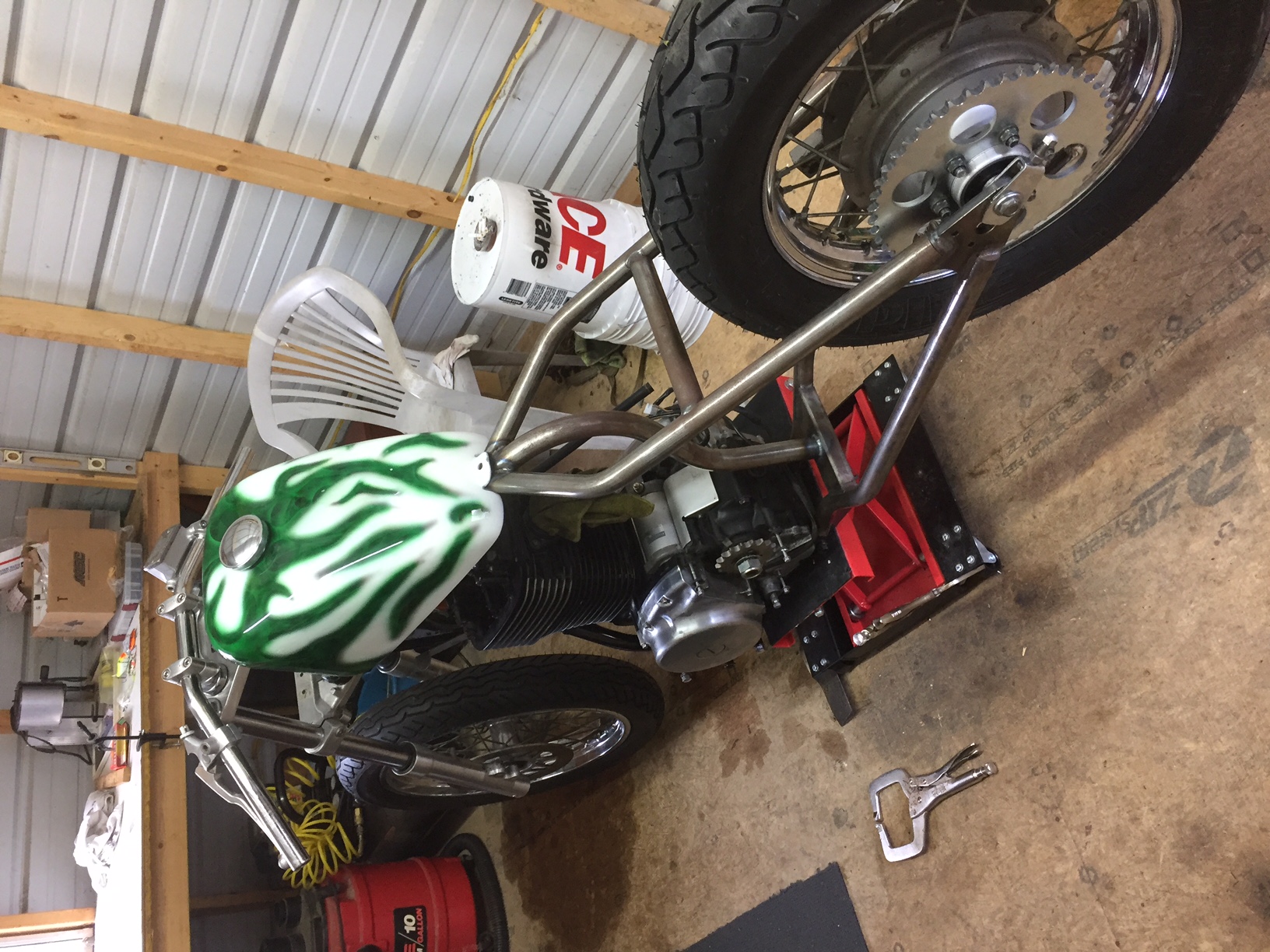 Hey guys I haven't posted any updates in a while. But I have been working on it. Welded the frame up recently and made the spacers for the rear wheel to center. Working on mounting the tank now, then the electronics can and battery box. Everything is coming together nicely so far. Fitting as it should and lining up as it should. I will post several items in the classsifieds that I have taken off. I will keep you updated more now because it's coming together quicker. It has been a fun project so far and I am anxious to ride it. So hard making decisions on it now because the sky is the limit on builds. Hope all is well.