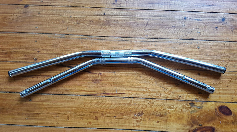Here are the new bars on the bike ... the wide angle lens on the phone camera probably makes them look wider than they actually are.