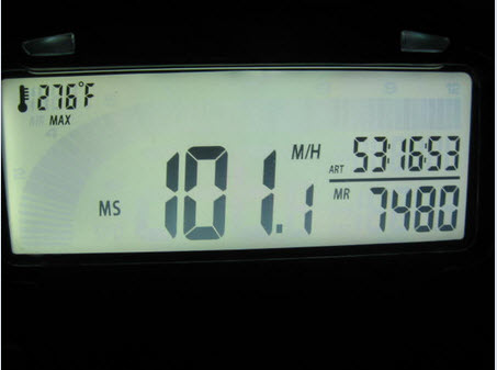It went 101.1 mph @ 6,215 rpm.....if I fussed around with the gearing I could probably do a bit better.