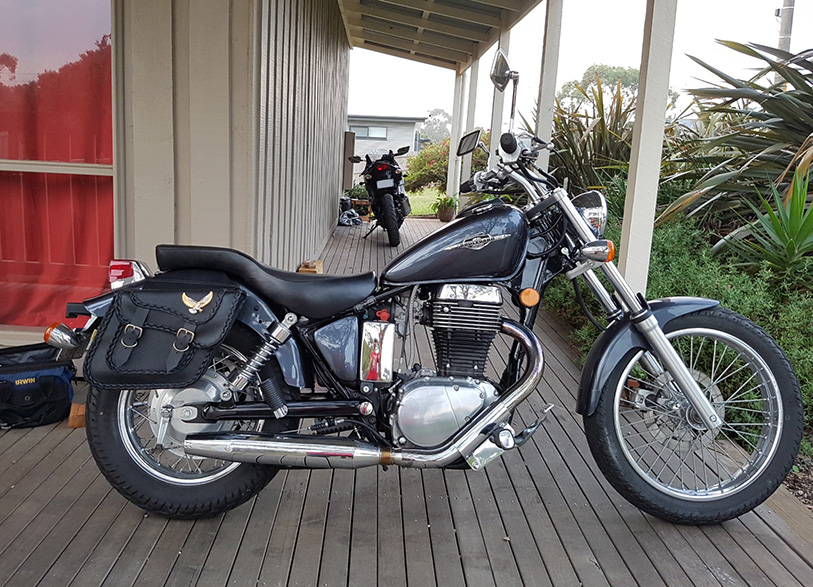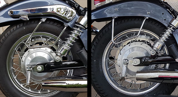 A while back I got some Willie and Max throw-over saddlebags and a set of OEM saddlebag brackets. I wasn't sure the brackets would work very well, but none of the other brackets I found looked like they would fit a late model S40. I think the bolts in the fender rail have migrated a bit at some point in the last few years.