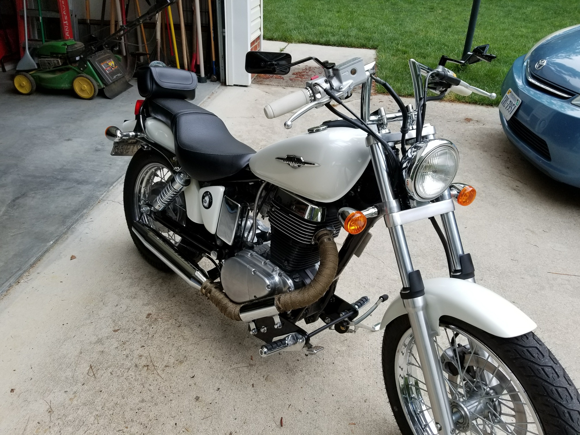 S40, 2014, Dyna, Raptor, 52.5/152.5, spacer mod, sea level, cat-eye LED tail light, bullet style halogen turn signals, 'Superbars' with custom 40mm risers, modified stock seat, Metzeler tyres.