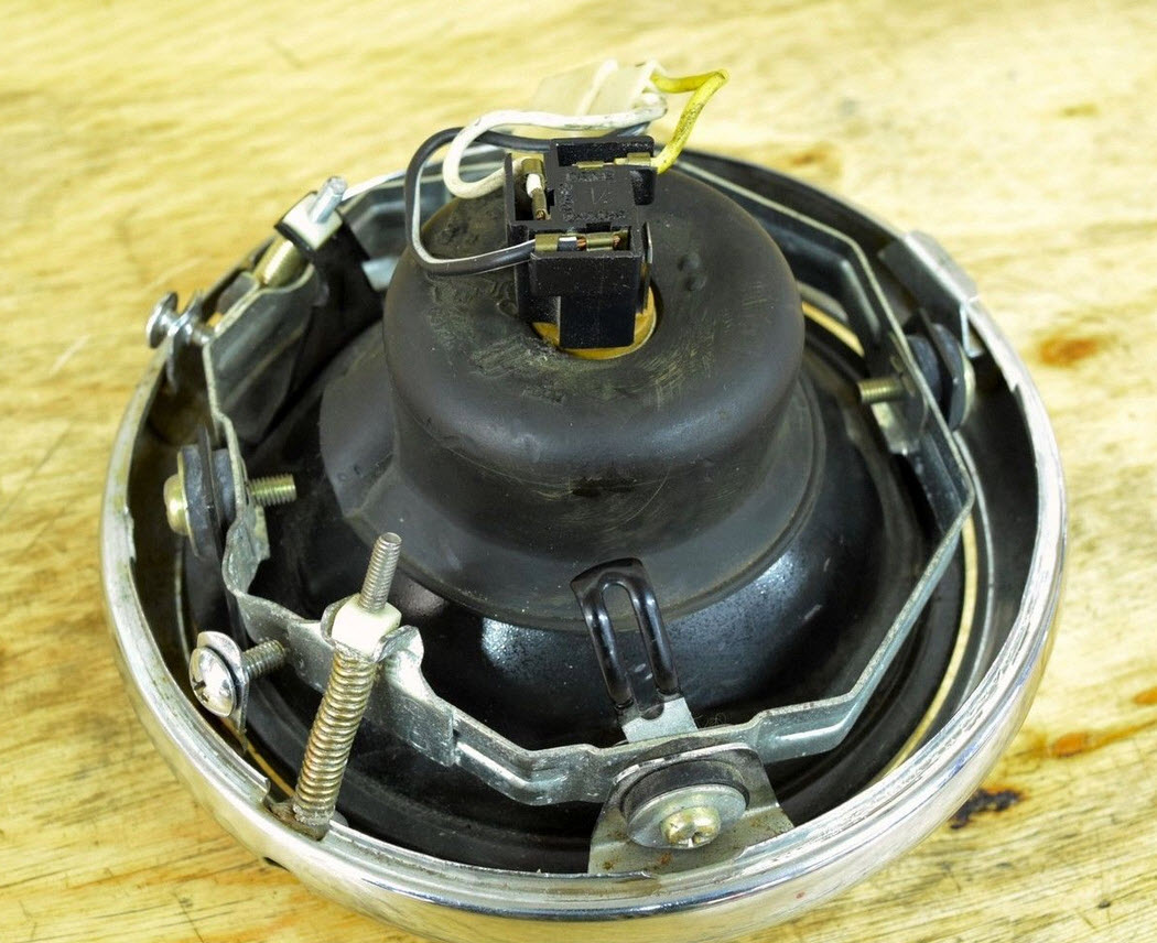 Badwolf used a small Harley housing. The stock headlight uses the reflector as the "structure" that holds every thing together - so if you remove the reflector and lens - there it nothing holding the parts together! I suppose you could adapt a way to make anything work - but the headlight housings that accept the "drop in" type light housing would make it much easier.