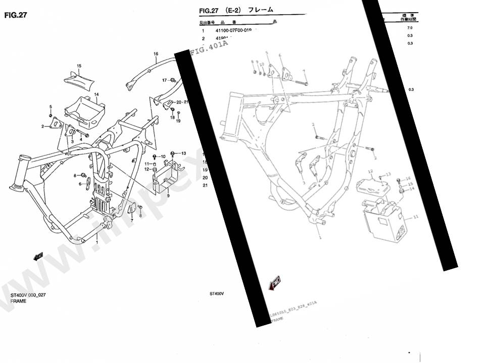 Below is the link for the ST400 parts diagram. Scroll to the bottom to select that page you want displayed and it opens further down at the bottom. The frame appears to be quite similar to the LS models back to about the point where the tank ends, suggesting that the ST tank might fit the LS.