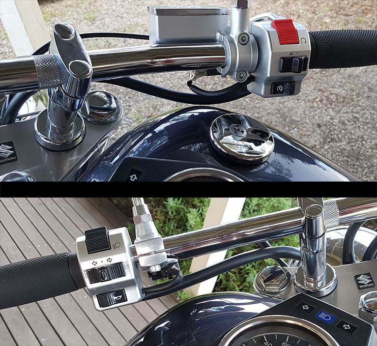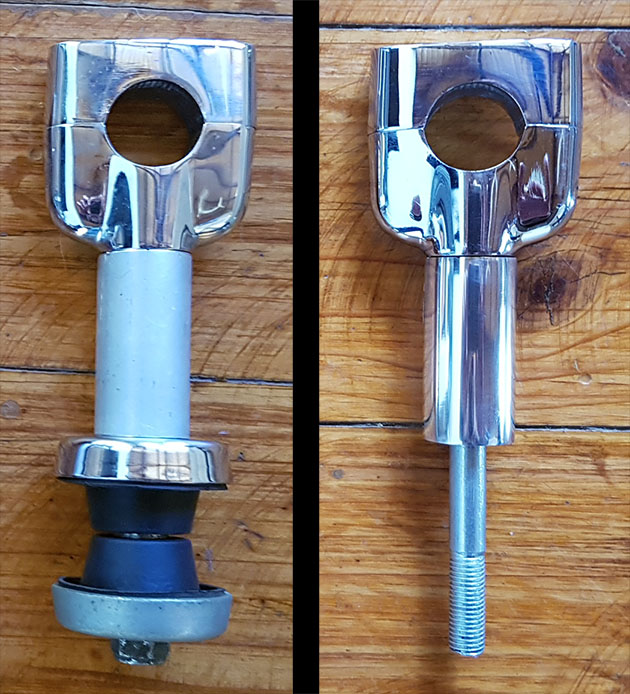 Basically, I made up some aluminium spacers to raise the old style risers.