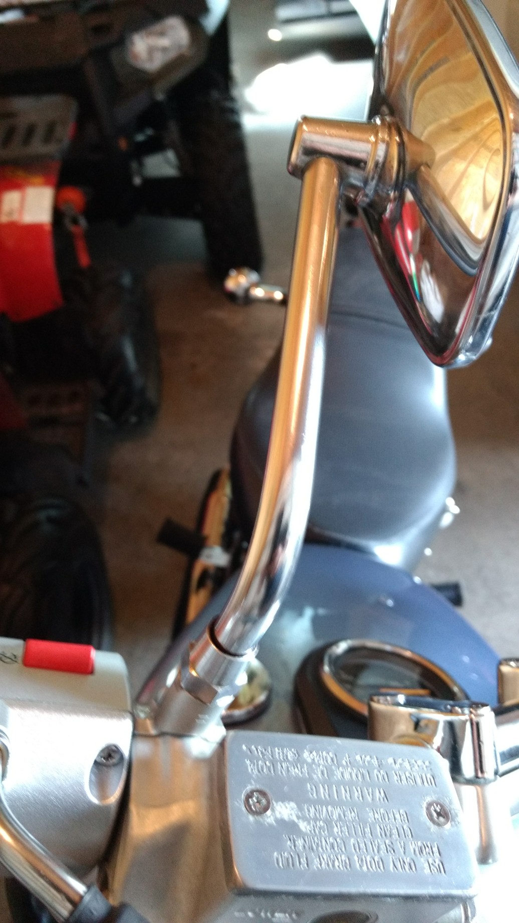 Ok guys don't beat me up too much for this question, I'm still new to the Savage. I recently picked up a set of stock mirrors (thanks again Hamman) but am having trouble getting the proper orientation. On other bikes I've owned the lower mounting stud and mirror stem were separate but it does not appear to be the case on these. When I spin them on just snug they face about 45° off. Do I just need to use washers under them to get it right or is there a trick?