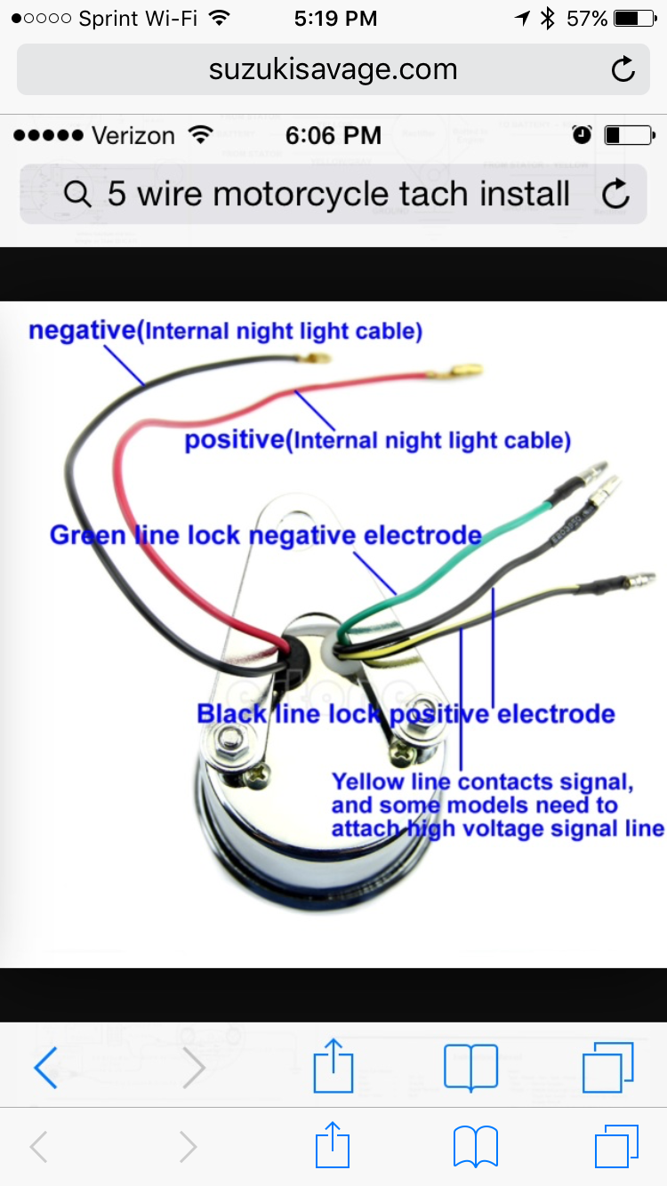 I bought a 5 wire tach on eBay. I read that some others have had success with them so I bought the same one. I thought that I had wires it up correctly but obviously not because I'm only getting light to the gauge but no reading. Anyone know where the other wires go because I'm stumped and I need to put my bike back together to get to work tomorrow.