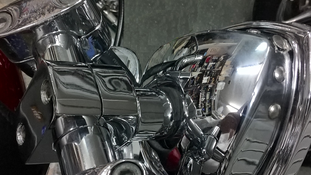 For the lower light I took a block of aluminium a little wider than the mounting holes and shaped it for the angle of the forks - I have +4" forks so the angle is steeper than normal. Then drilled the block to match the mounting holes.