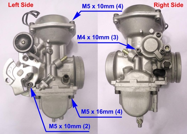 - Budget for replacing the carb fasteners(I think there are 8). The stock fasteners are JIS ("Phillips-like") screw heads, and they tend to get rounded easy. If have to go back in to the carb, you'll thank yourself for replacing them with hex-key fasteners.