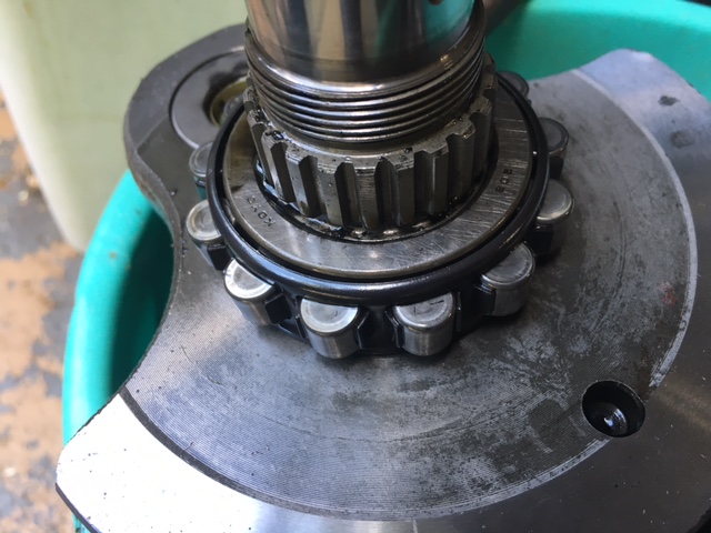 The left side uses a roller bering. So, if I were to do this again, I'd remove the left side case off first, because it slides off easily. Empty the innards, then tap the crank out of the right side case.