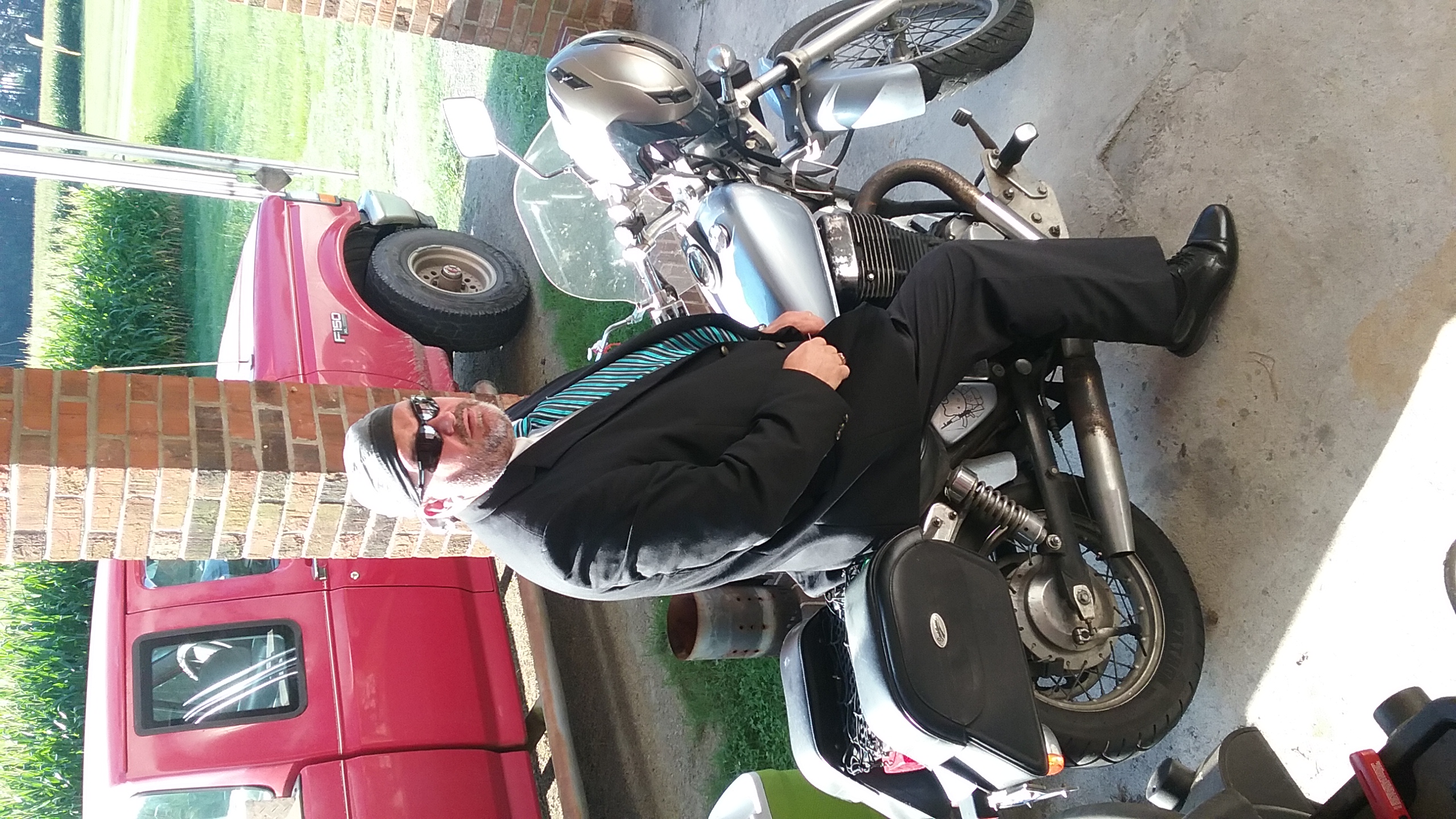 Well, I was going to work and this was how I dressed. I work at a funeral home and was going to a funeral. I did put my helmet on.