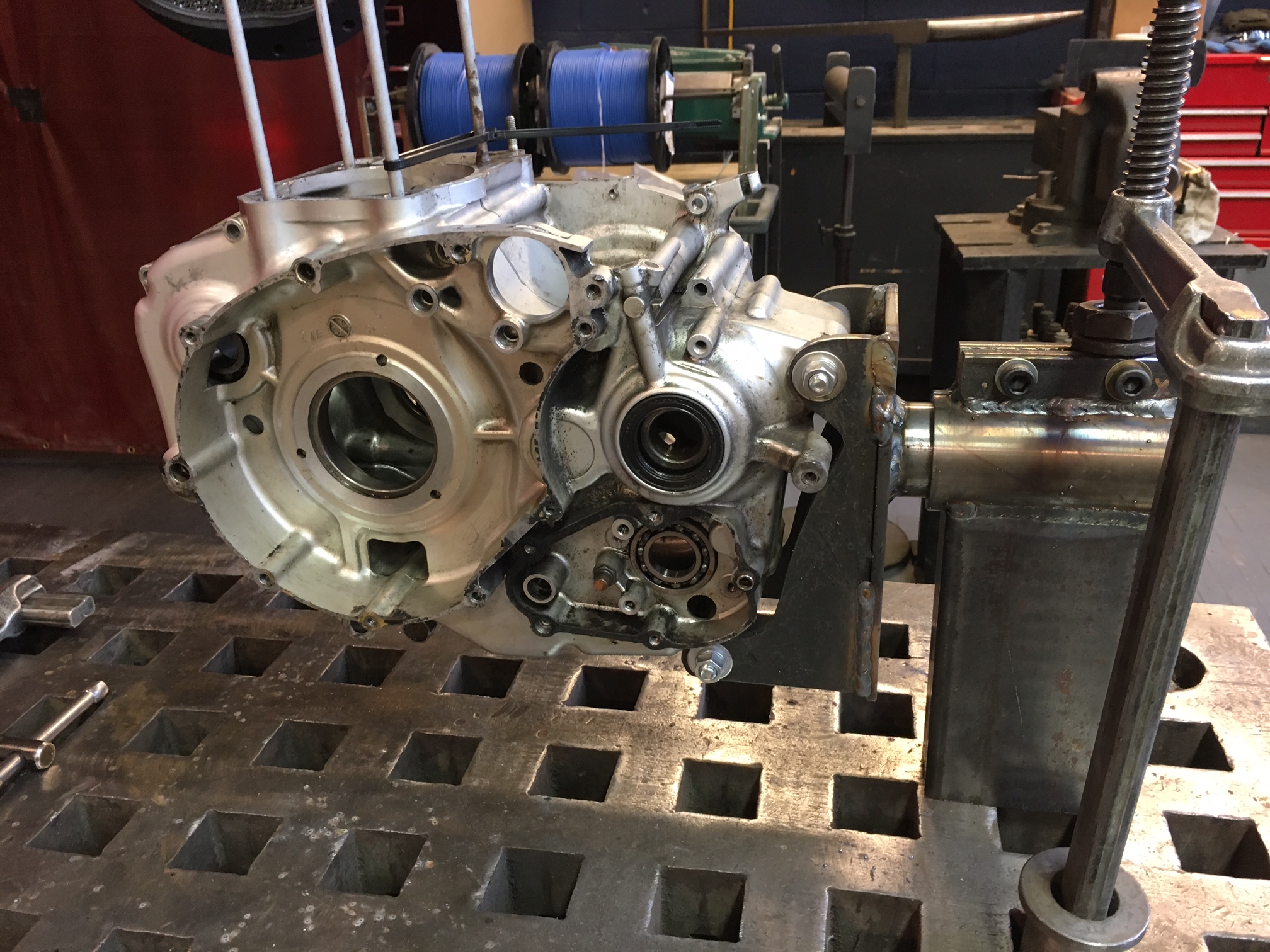 Might make a simple cradle to lay one 1/2 of the crankcase in to allow me to build up the bottom end. Shouldn't be to big of a deal.
