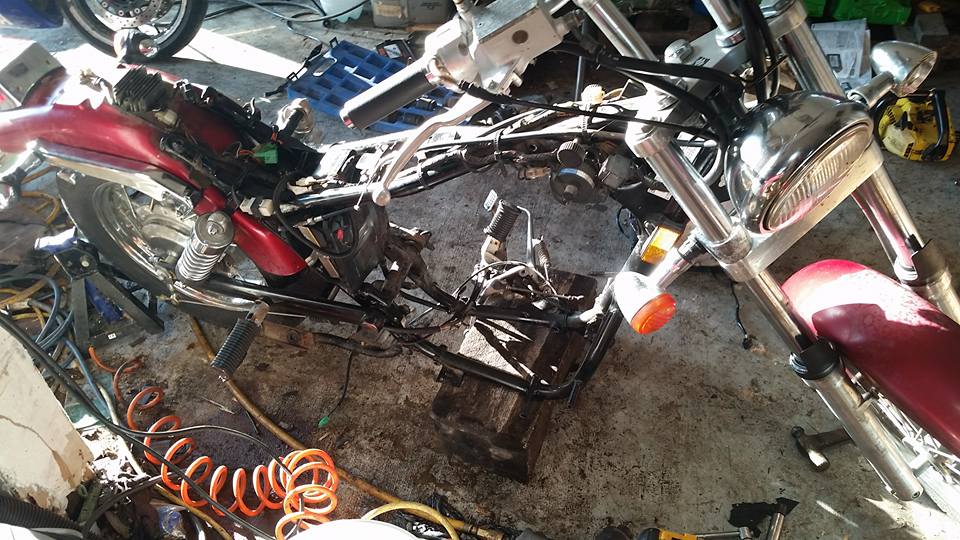 I have had the ability to keep track of every single nut, bolt, screw, washer, hose clamp, spacer, alignment pin, etc on projects in the works for as long as I can remember. Even as a little nuts helping my pops work on this or that I just knew where everything needed to go to put it back together. It can look chaotic from the outside but It has rarely failed me. Measurements stick with me too. Since I acquired my Savage and then a couple weeks ago my Thundercat, I have been stricken with the strong bug to wrench on more bikes. This has prompted me to make more room in the shop... So a whole lot or organizing and rearranging has taken place in the last day and a half. I now have room for at least 3 more complete bike teardowns lol. If I get rid of an arcade machine and a jukebox I can fit one more!