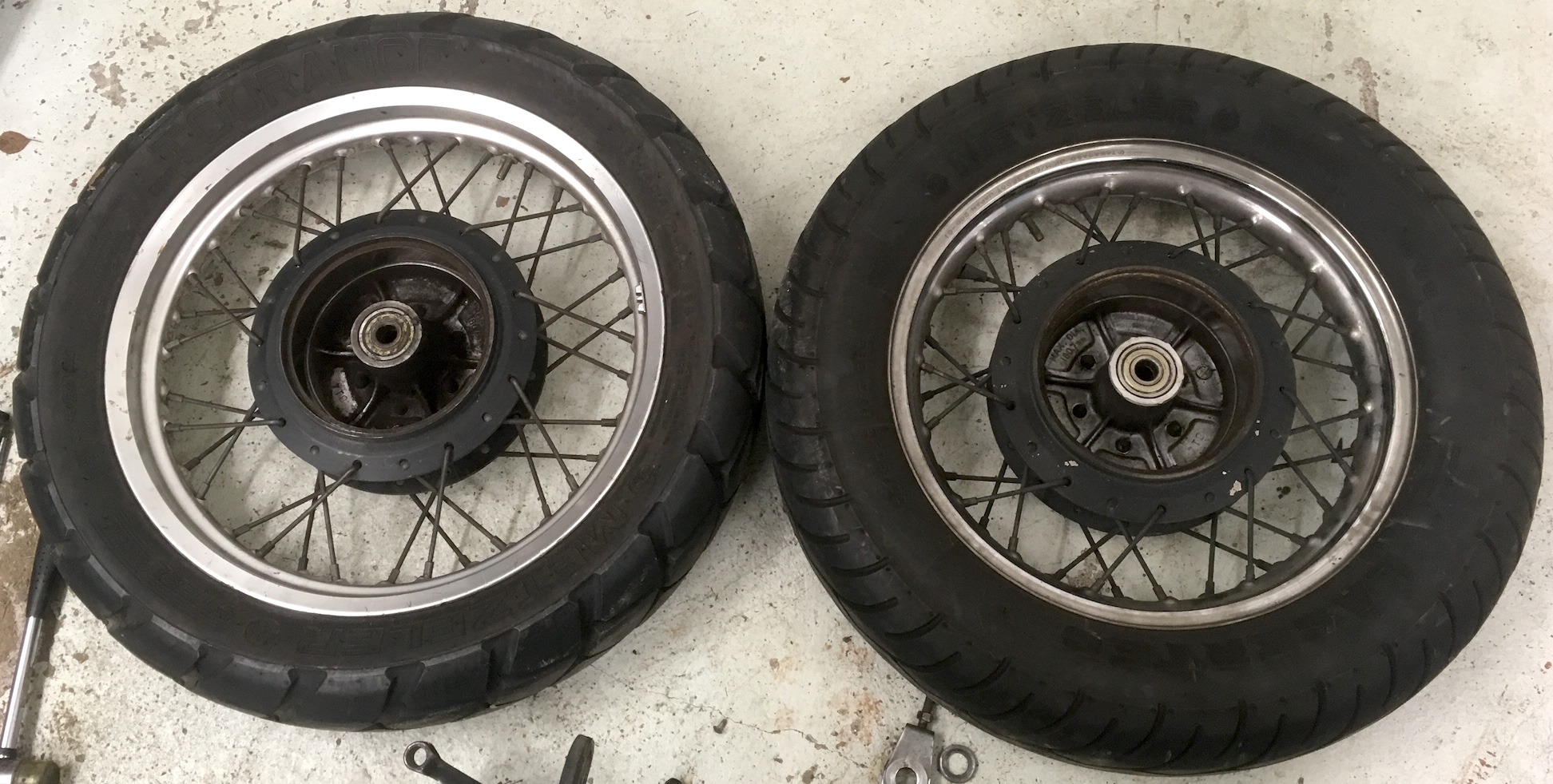 I bought a 1st gen Suzuki DR750S wheel from eBay, hope it's a direct fit. If not, the rim and spokes should fit the Savage hub as the drum brake is the same diameter and the rubber cushions are the same.