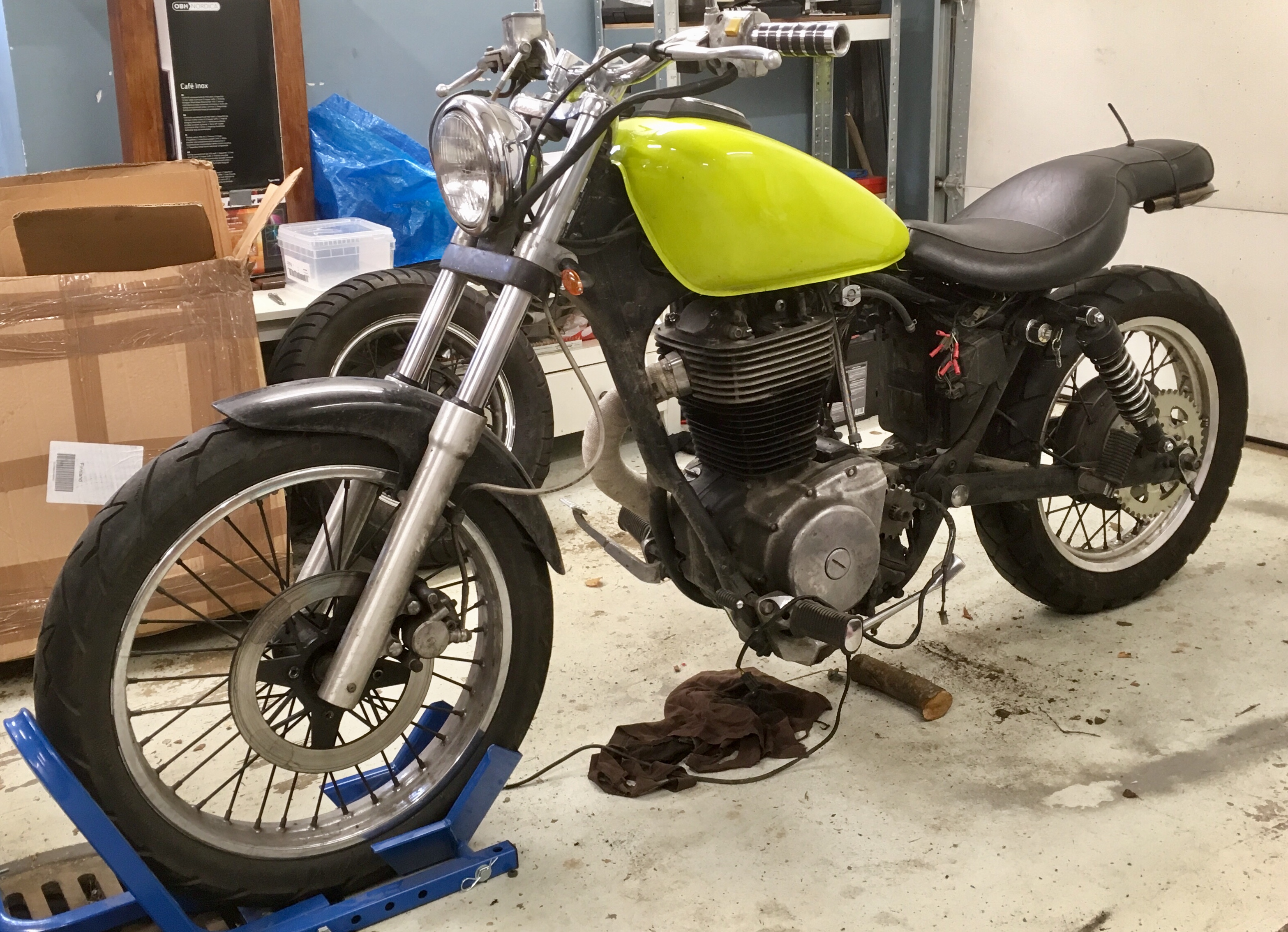 Mikuni BST40, K&N filter, Stage2 cam, Verslagen tensioner, Sportster muff, 120 proof moonshine, Pirelli MT 66 tourers... and a chain conversion too !