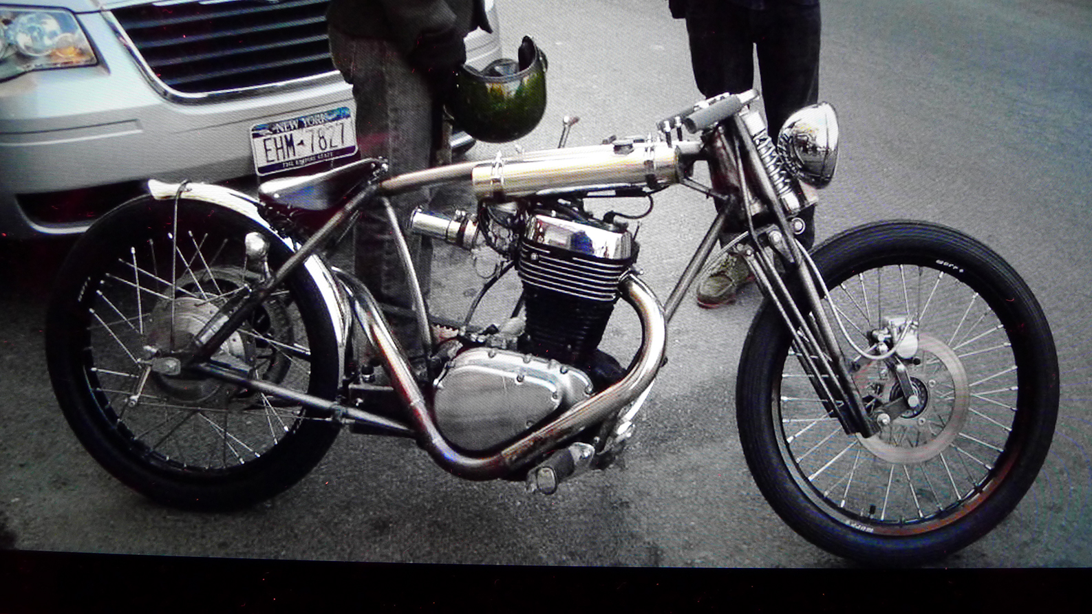A nice looking SHOW bike. It will most likely never see any REAL riding. When building a show bike some guys will never ride it or even start it up. Makes the build much cleaner with no wires or oil leaks, so they skip messy wiring and adding oil. Not to nit-pick, but I am surprised he stuck with the belt, a chain would be more period matching.