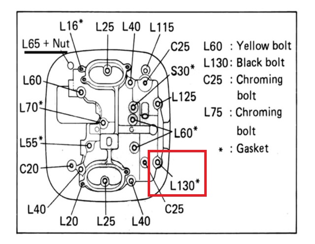 If not, I just need to know what I need to re-order. I am guessing the head gasket is not reusable at this point (Goodbye $35), probably the same for the cylinder gasket ($8-$10). I would buy the 5 sealing washers ($10) for sure, they're too cheap not to at this point. I would probably also buy a tube of Threebond 1211($25-$30), just to ensure that everything is right this time. And I would likely buy a new M6X130 bolt ($2), just to be safe. And maybe buy one of the helicoils (And other parts? I'm a little unsure on what you mean) from Dave?