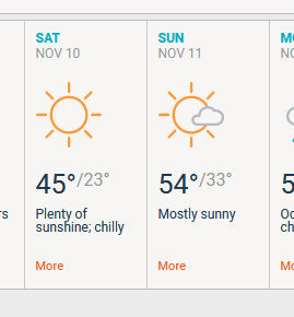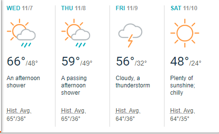 The weather forecast is just a bit less joyful......seems a cold front is moving into the area Thursday night. Highs are going to be a few degrees cooler than forecast last week. With any luck things will improve.