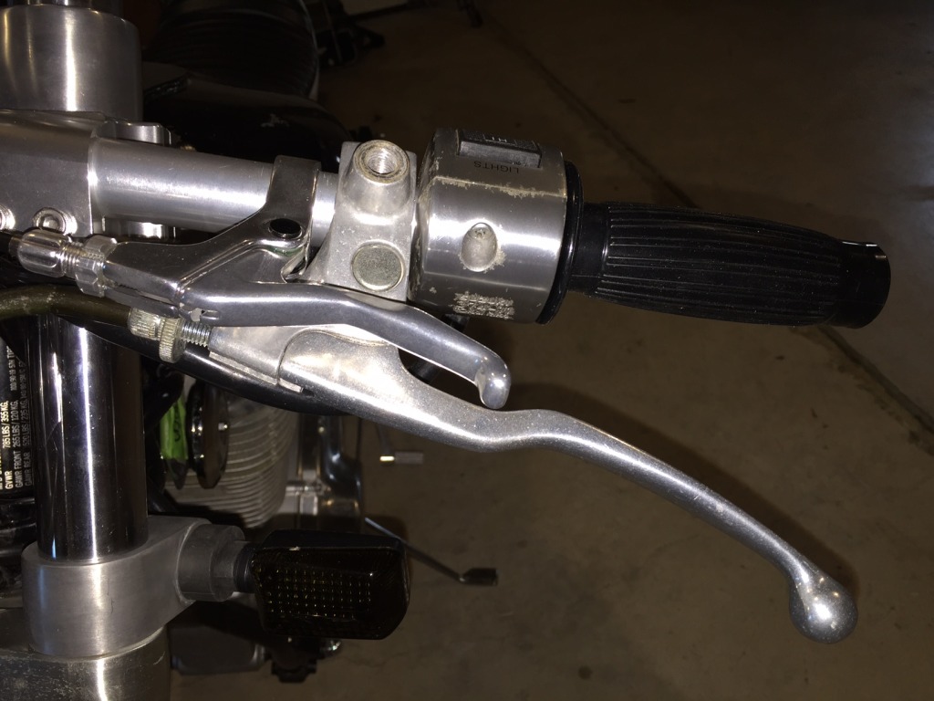 I then mounted the new bicycle brake lever on my clip ons. I had to angle the lever up a bit - so it did not hit the passing light switch when I pulled it in.