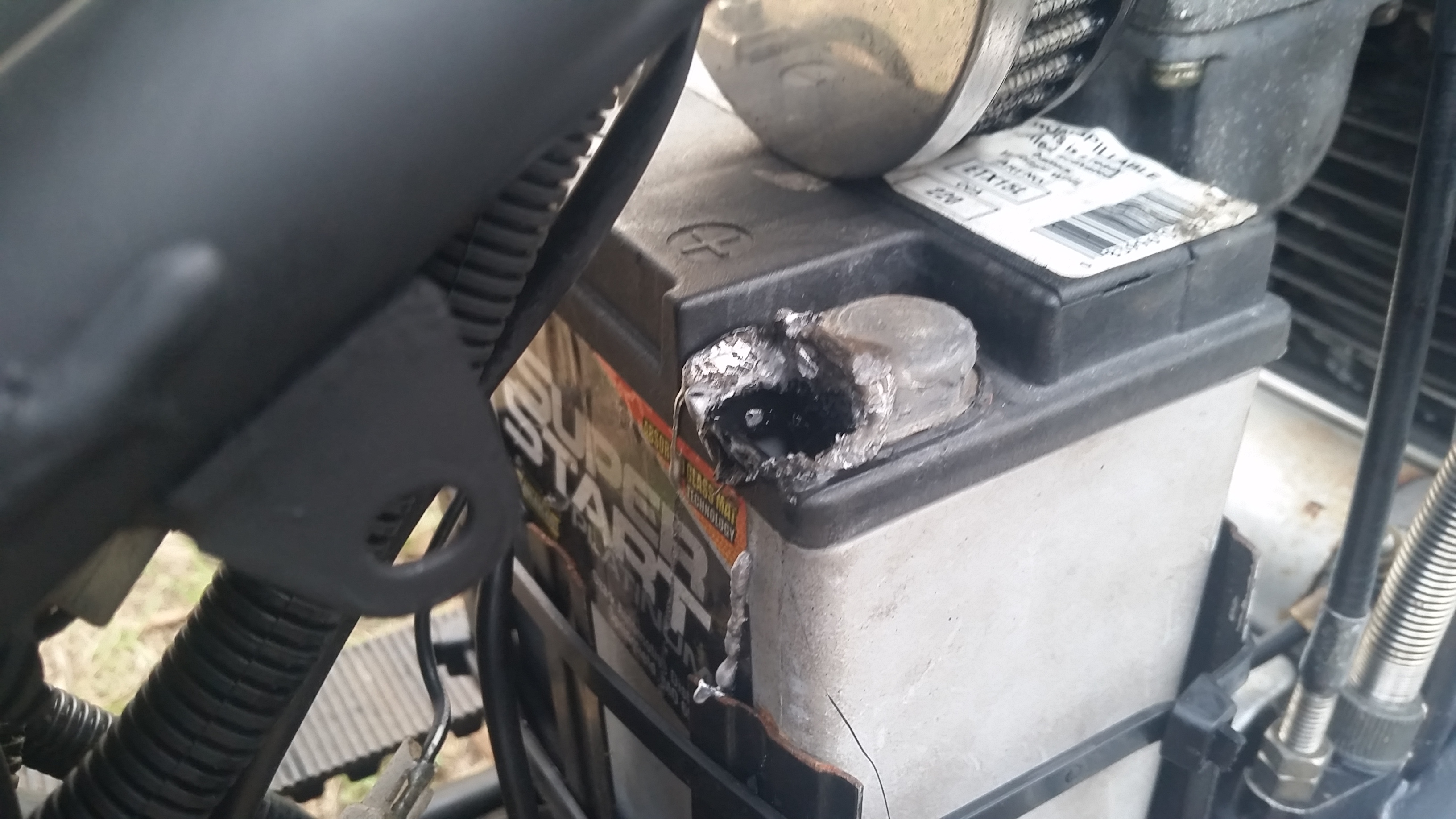If you hit the starter button and the engine is on the compression stroke, the starter cannot push the engine over TDC. You should let go of the starter button immediately - then click the bike in gear and bump it forward until the piston goes over TDC. (This can be difficult and potentially dangerous if you stall the bike in traffic). The manual decompression levers that require you to take your hand off the clutch lever to run them are not much better/safer in traffic - I built my manual decompression using a BMX brake lever that allows you to pull the decompression with your index finger while holding in the clutch lever with your other fingers.