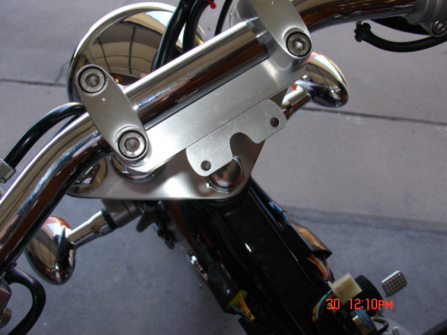It is a little high but not as high as it looks, wide angle lens and all that. It can be mounted in front of or behind the bars. Will probably make a lower one when I can get a better piece of alloy.