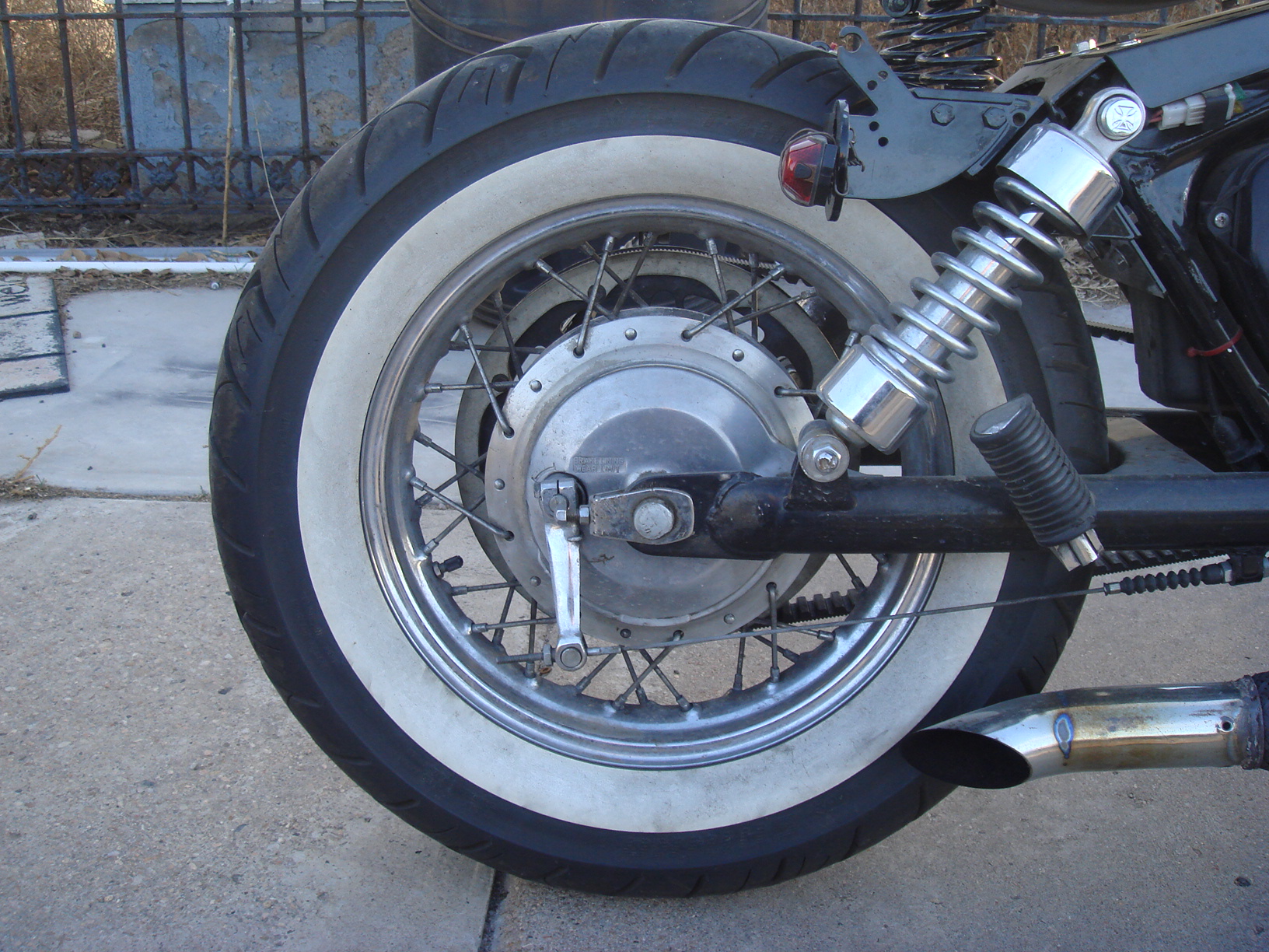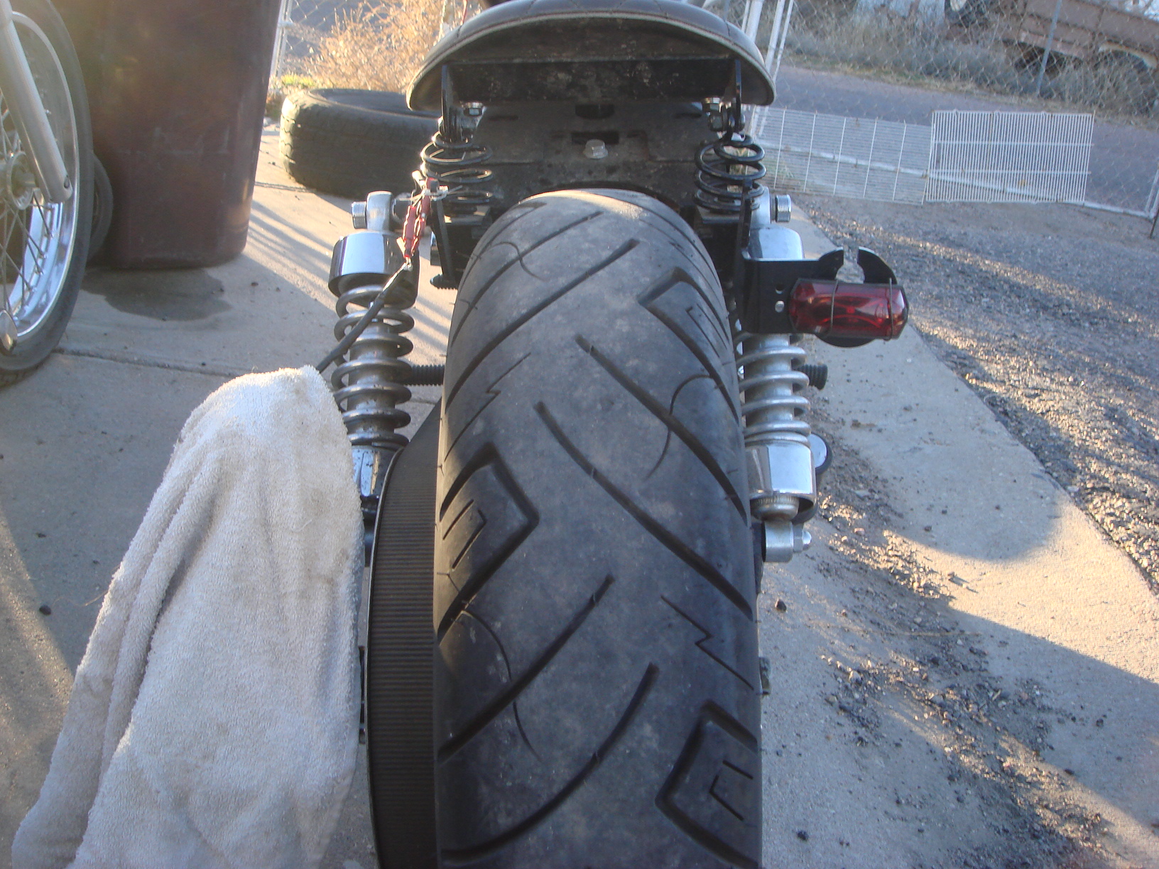Is that a Shinko 777 150/90-15 and running the stock rim , belt drive etc. ?