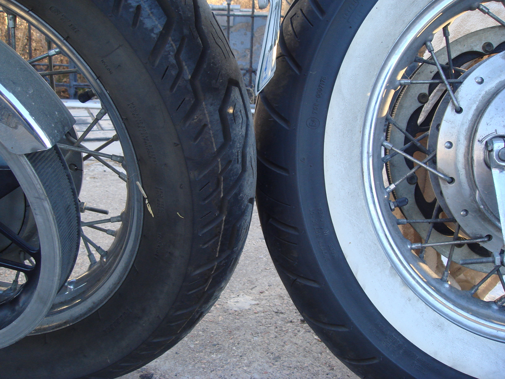 How much bigger physically would a Shinko 777 whitewall 150/90-15 be ?