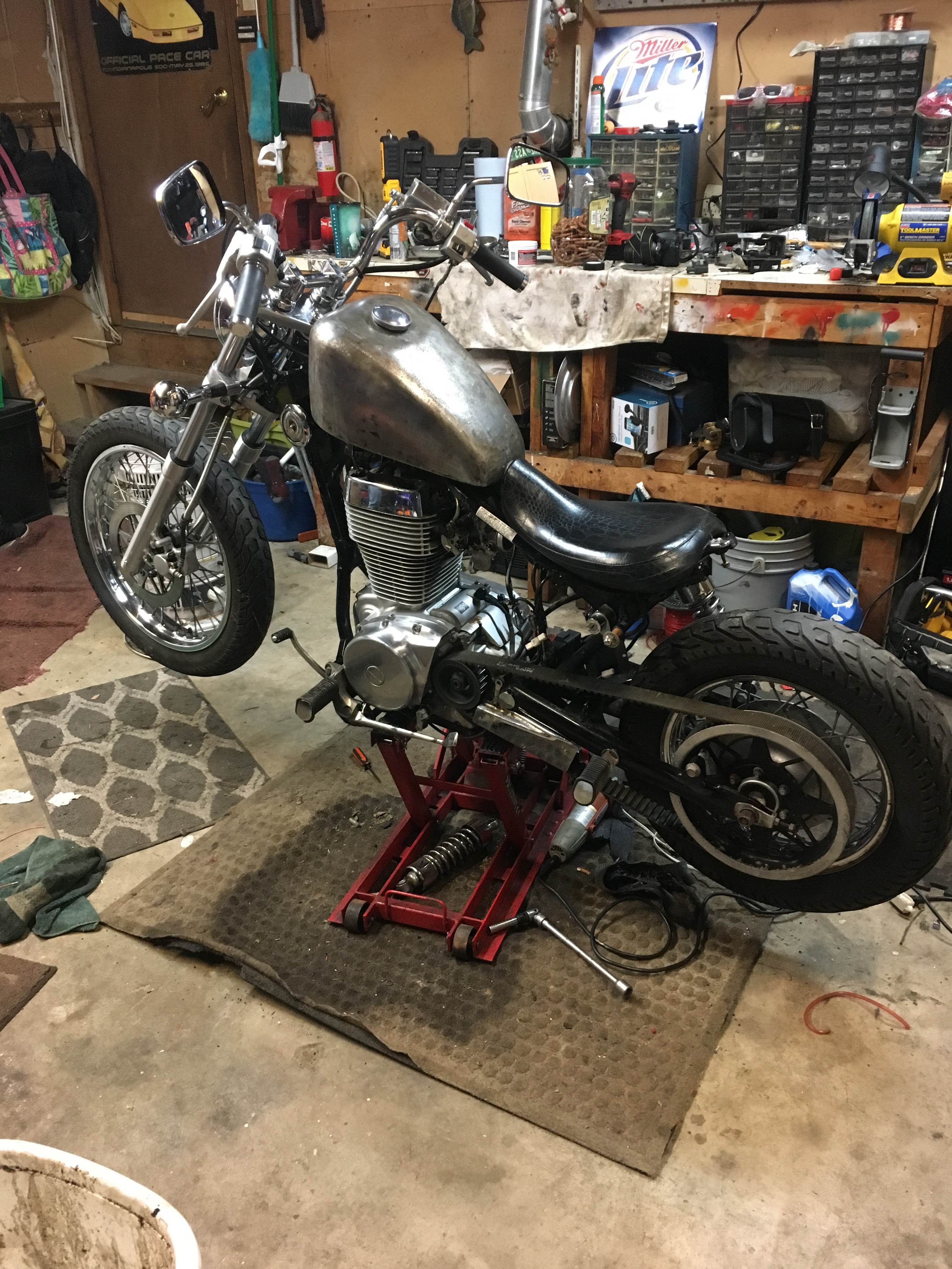 First post here since joining this forum and I have already read tons of great info on bikes. I have a 2000 1200 sporty that is perfect for me and runs amazing. I just picked up this 1998 Suzuki Savage 650 last week and I am thinking about making it into a bobber project. Im torn between the hardtail look and keeping it a softy. Im decent with a welder so Im ok there, but I figured id post a pic of the bike and ill try to keep everyone updated with pics and info as I go. For now though If anyone has any input with which direction I should go please chime in. I picked this bike up for 500 and only has 6k miles. Ill try and get better pics but here it is!