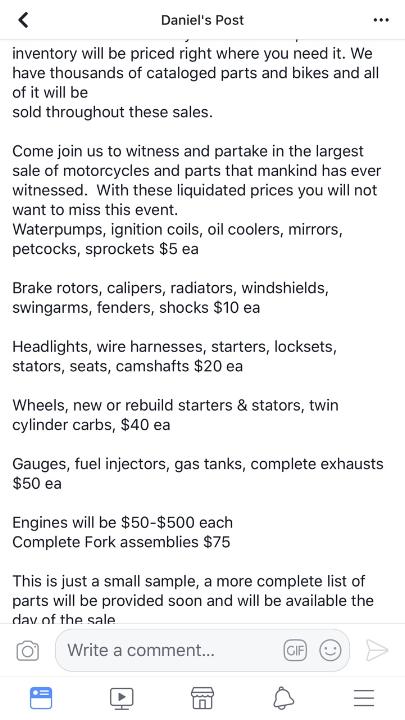 Re: HUGE Motorcycle Salvage Sale in AL