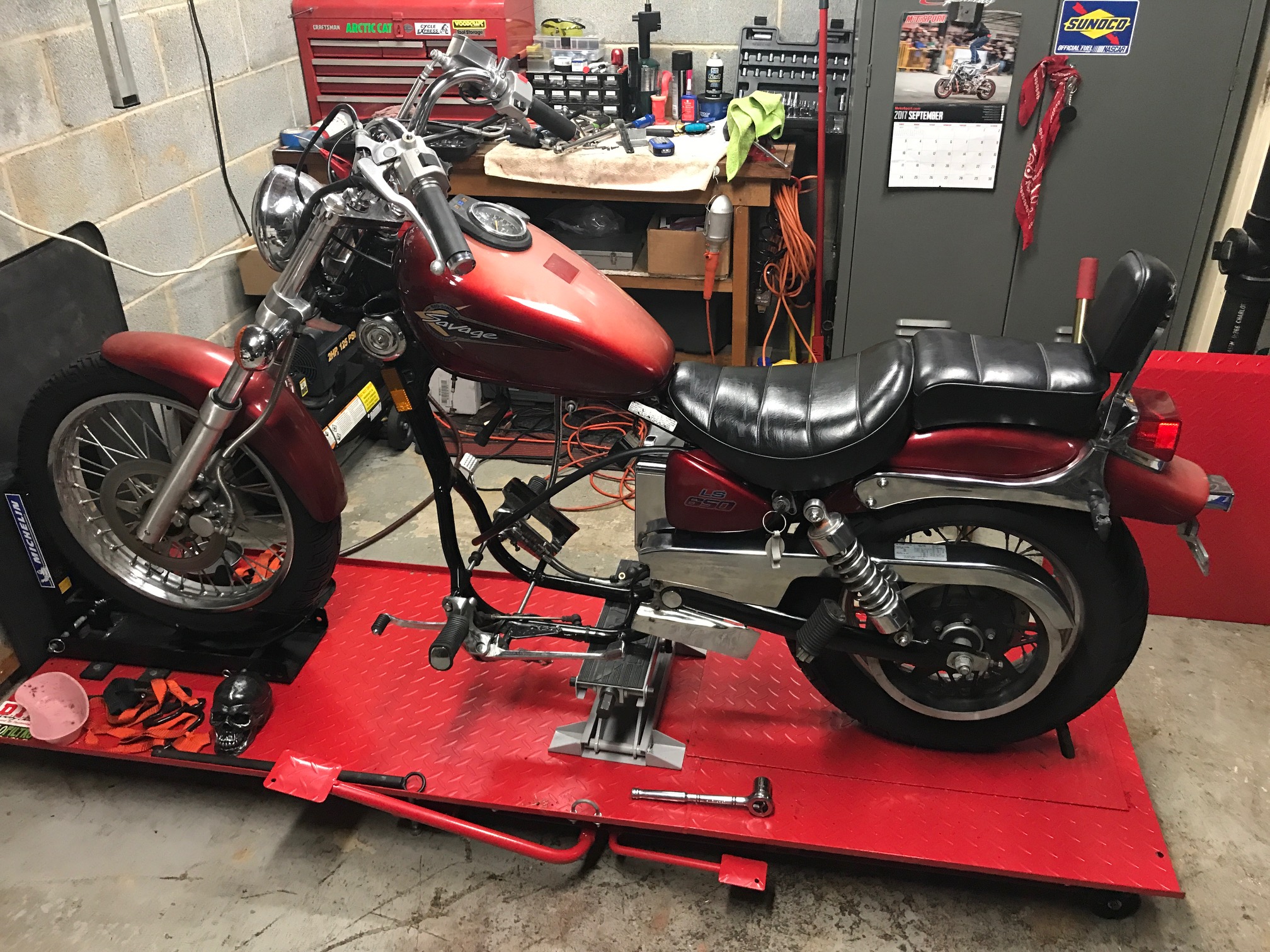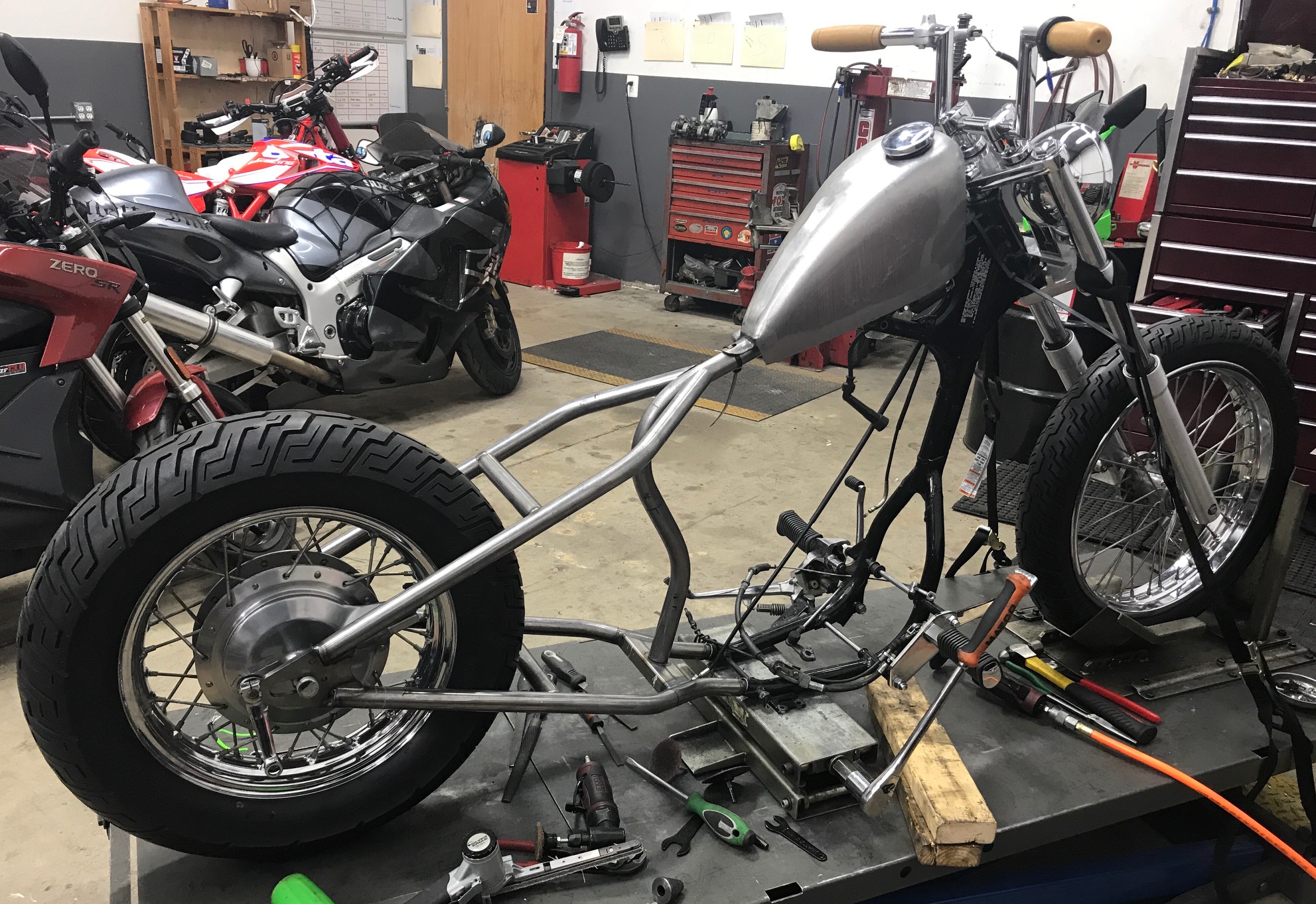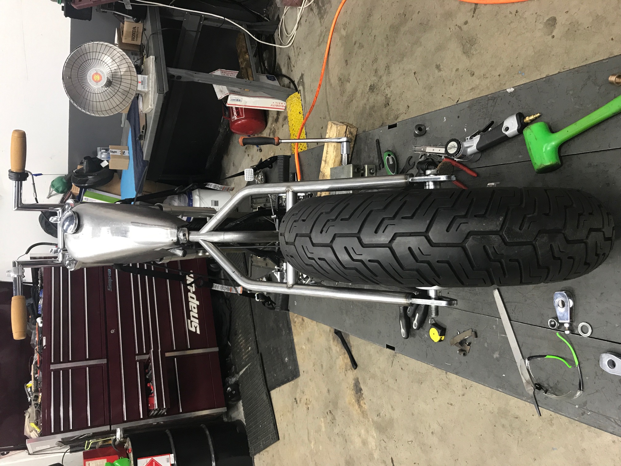 This is after i had it all stripped down and started getting ready to chop it in half and start prepping for the VV Hardtail install. I also had already put on my Biltwell Z Bars.